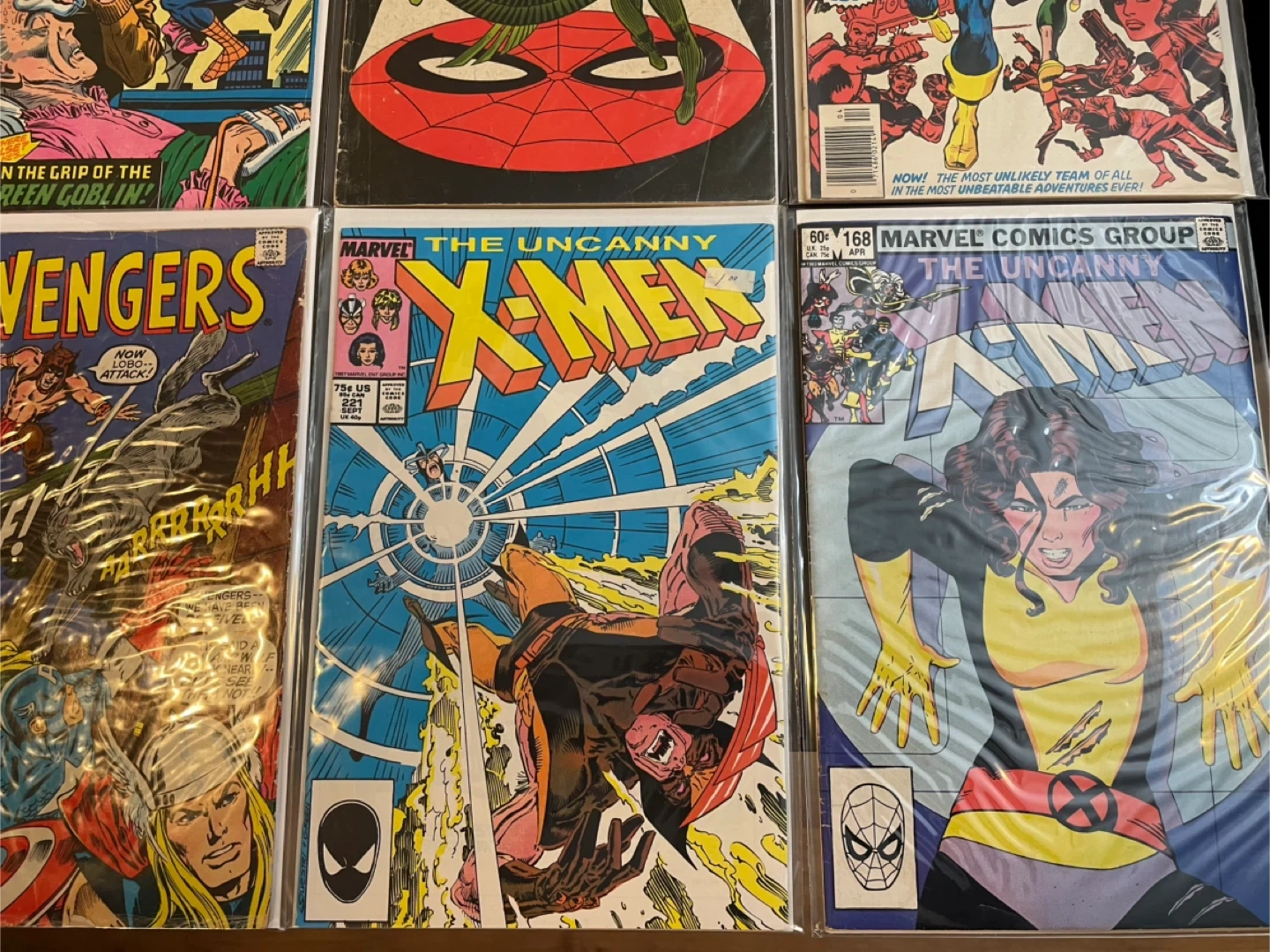 Collection of Marvel Comics issues featuring popular characters. Includes The Uncanny X-Men, The Avengers, The Amazing Spider-Man, and others. All comics appear to be from the 1980s. Great for collectors! 380$
