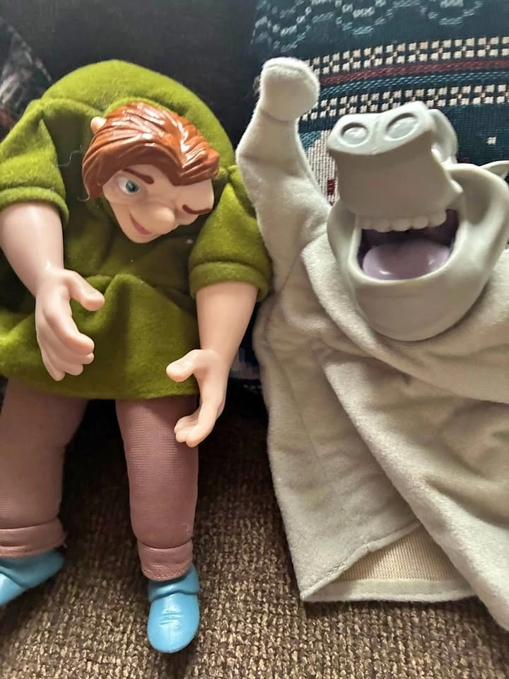 Up for sale are a pair of Disney’s Hunchback of Notre Dame Hand Puppet’s. They are from Burger King and clean. Accepting offers.