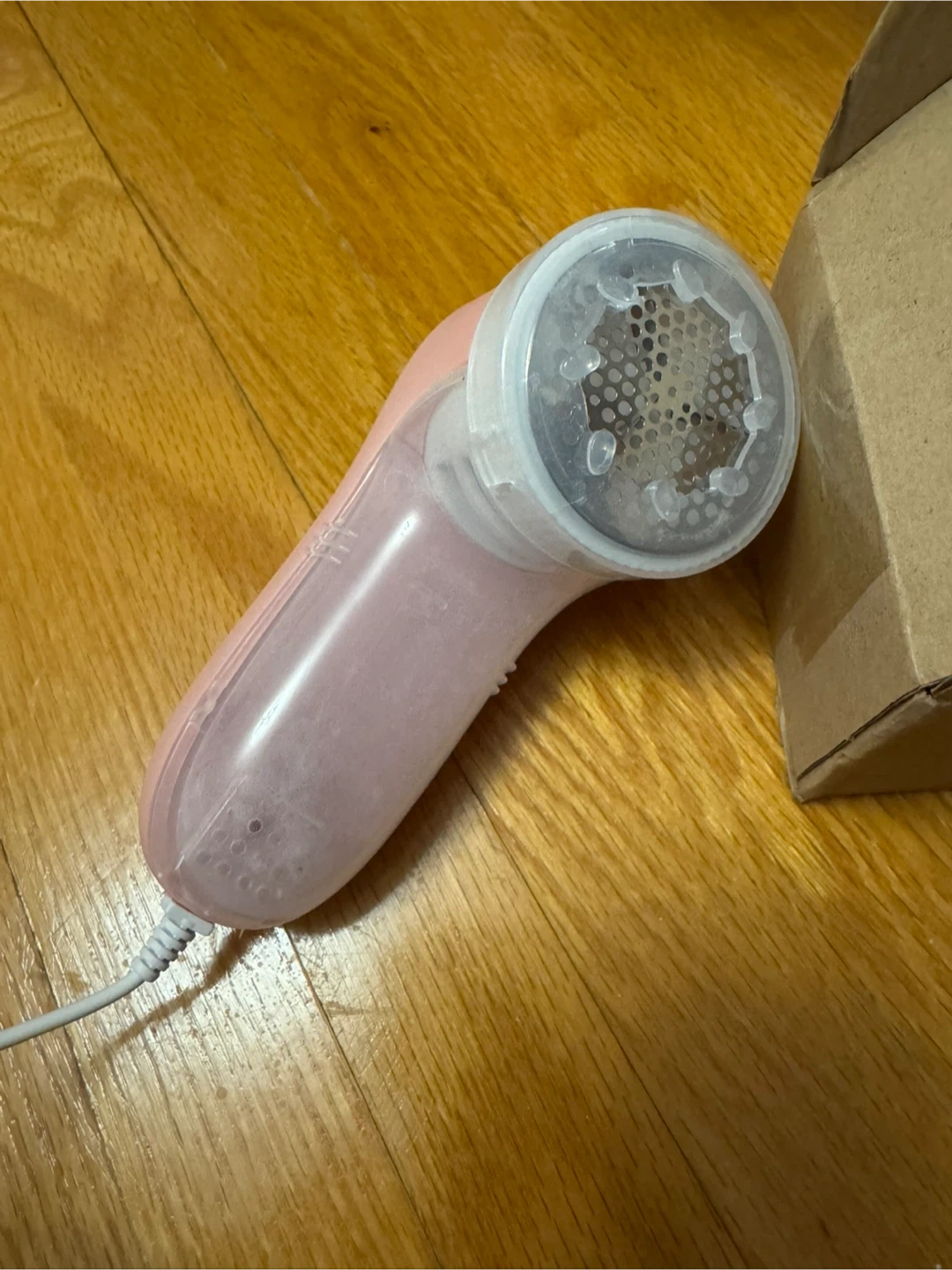 This pink fabric shaver helps remove lint and fuzz from your clothing. It's powered by an included cord. Keep your sweaters and other garments looking fresh!