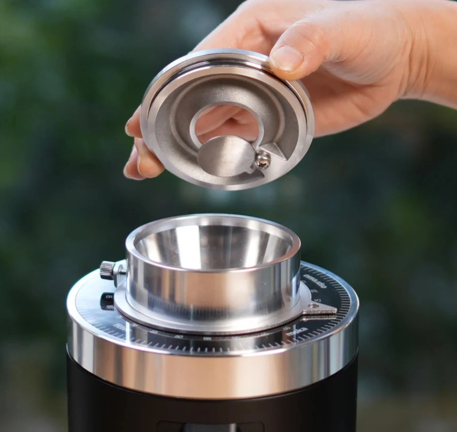True Zero Retention <0.1 gram Even without bellow this grinder reaches almost zero retention. Blow-out funnel, with lid to completely empty the dead space.