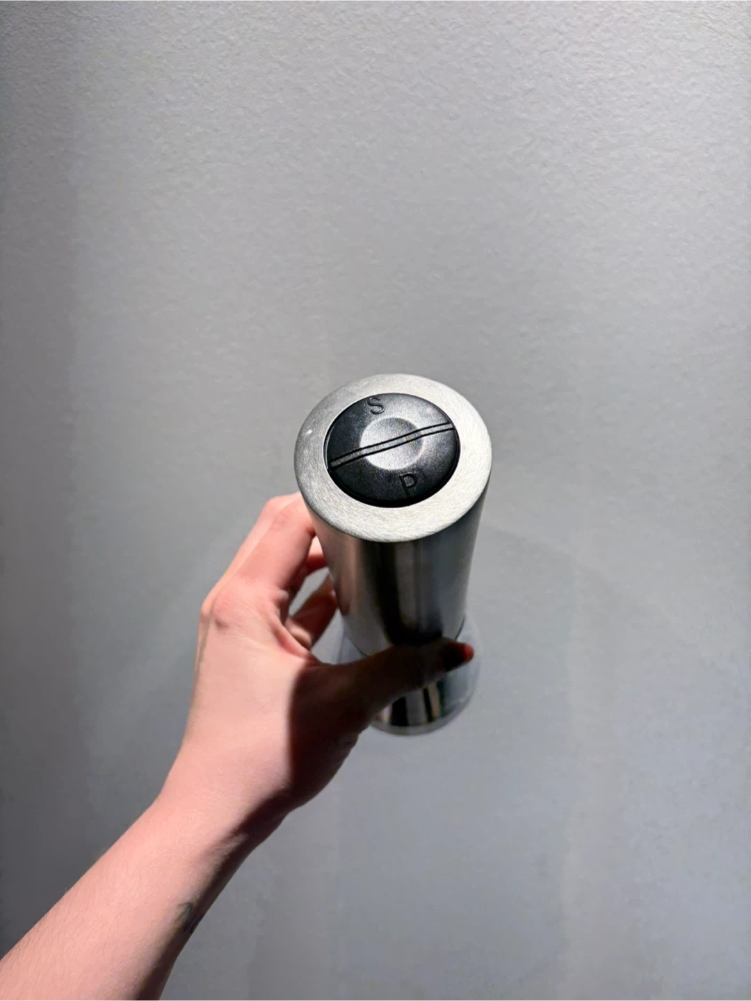 This electric grinder set makes seasoning your meals a breeze. It's constructed with durable stainless steel and a clear acrylic reservoir. It is battery operated.