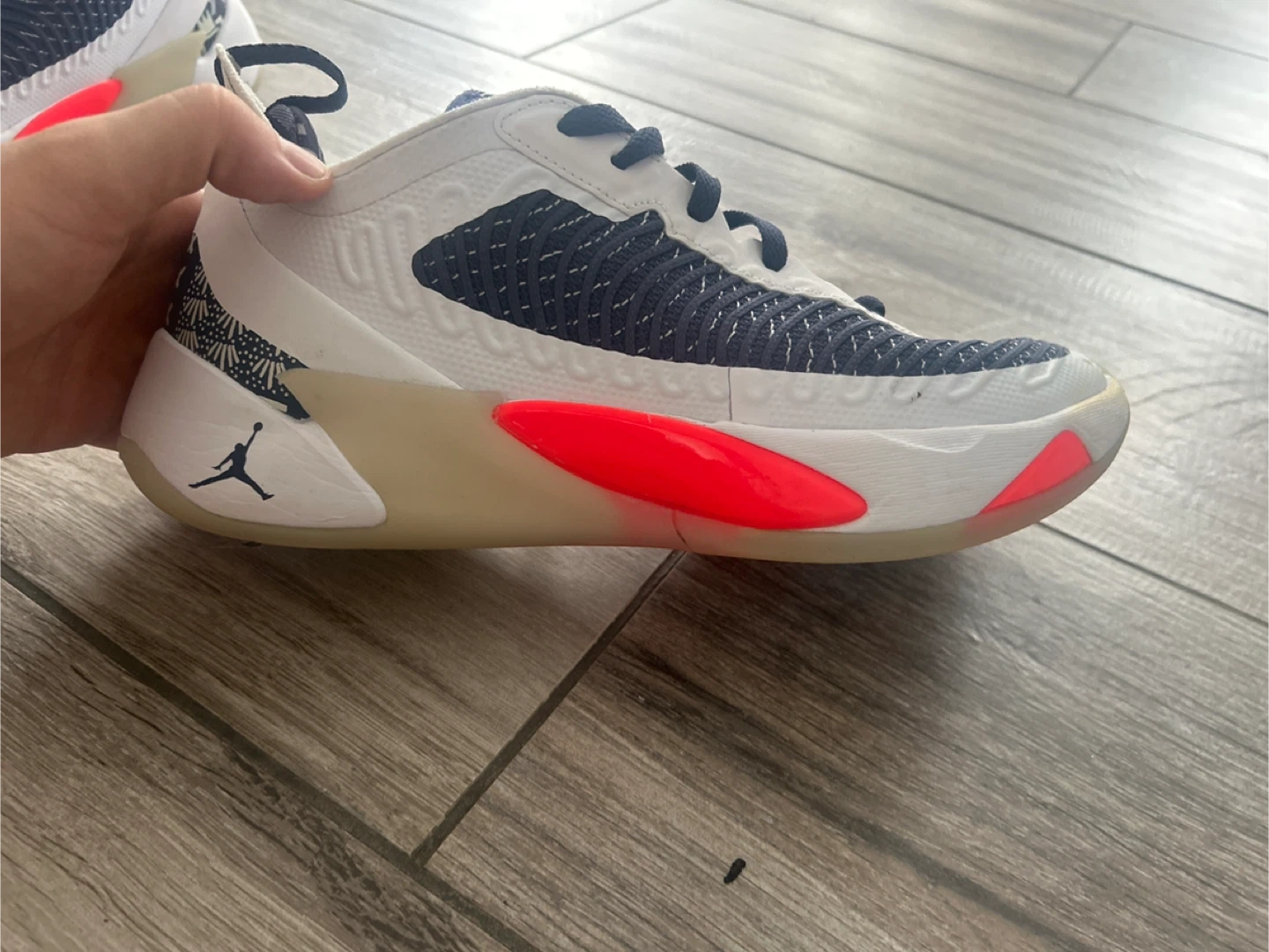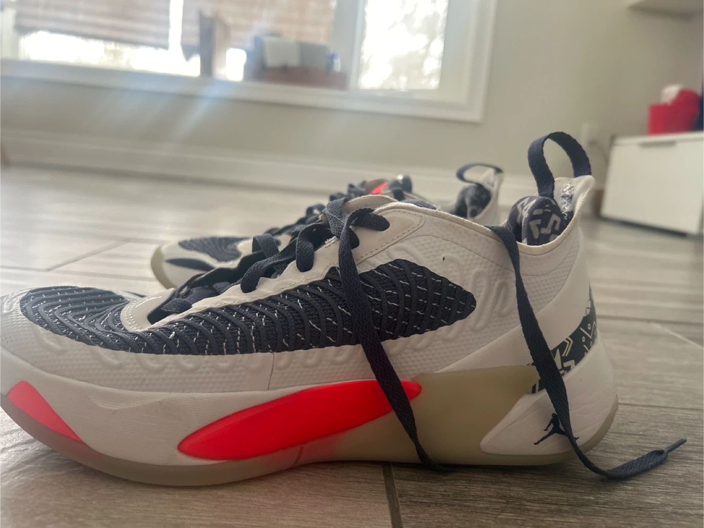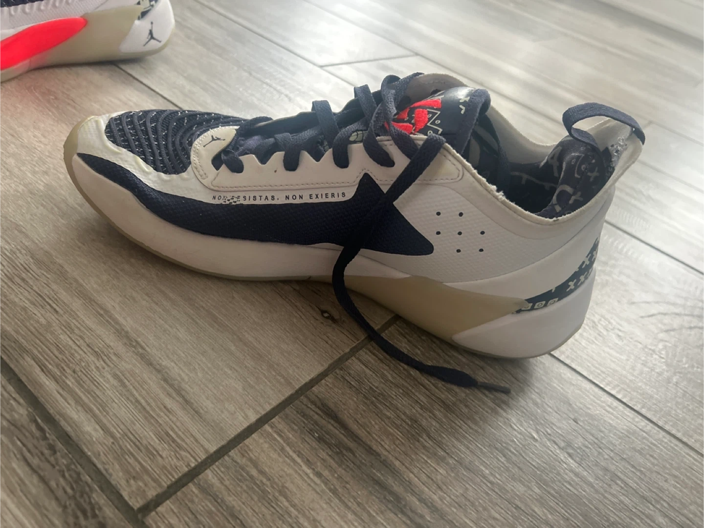Selling a pair of Jordan Brand basketball shoes. They're in good condition with some signs of wear, as shown in the photos. Perfect for hitting the court