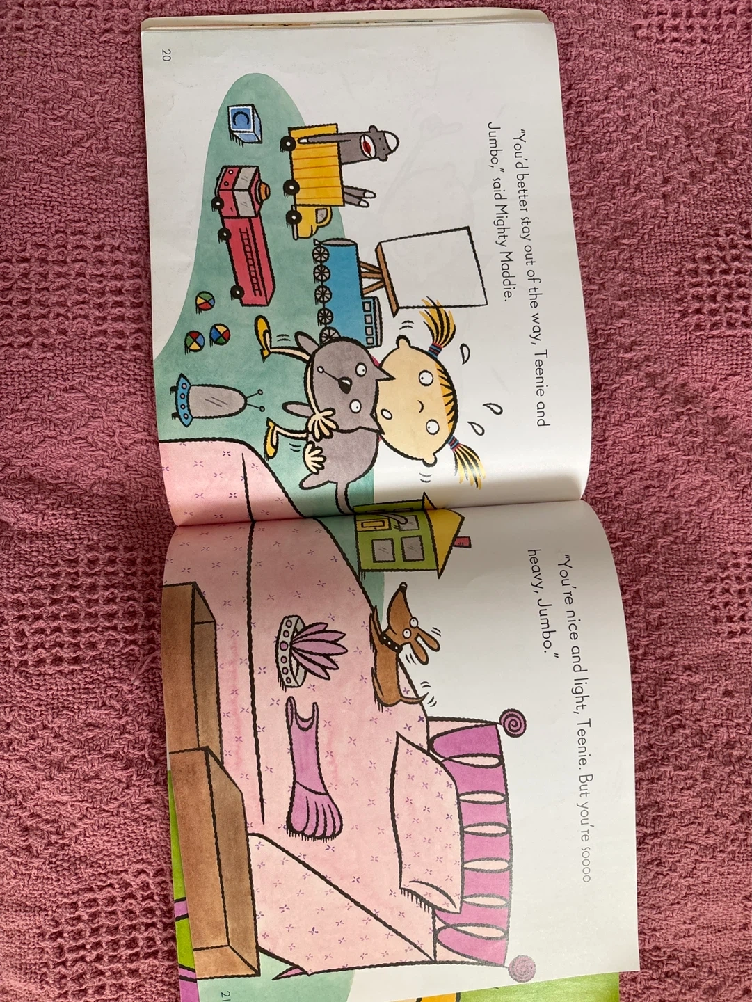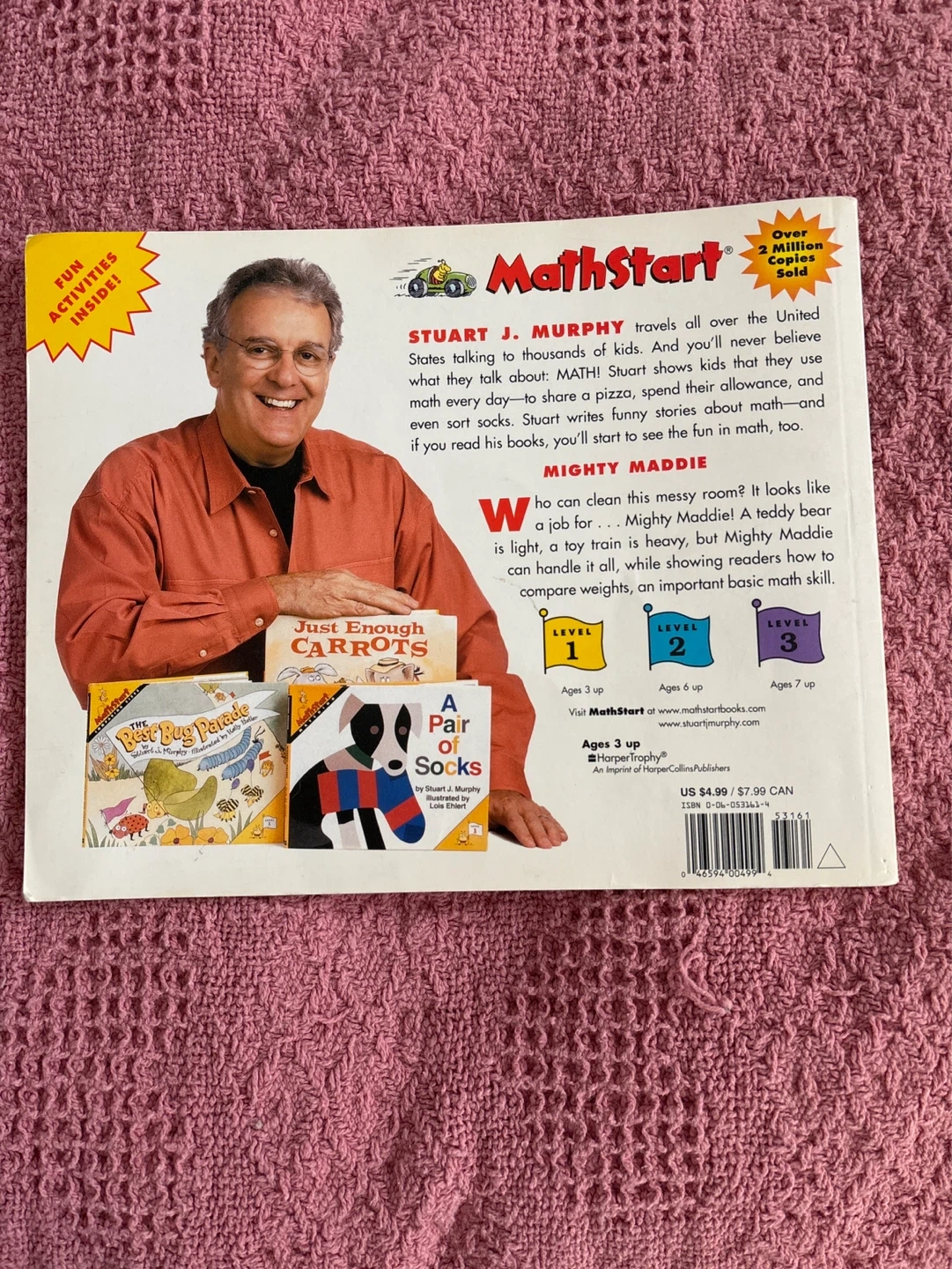 This MathStart book, Mighty Maddie, teaches kids about comparing weights. It's Level 1 and illustrated by Bernice Lum. Fun activities are included inside!