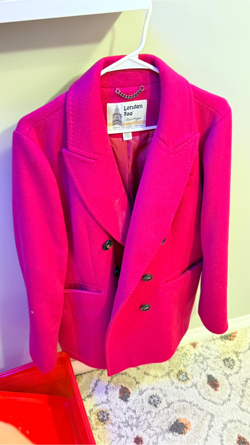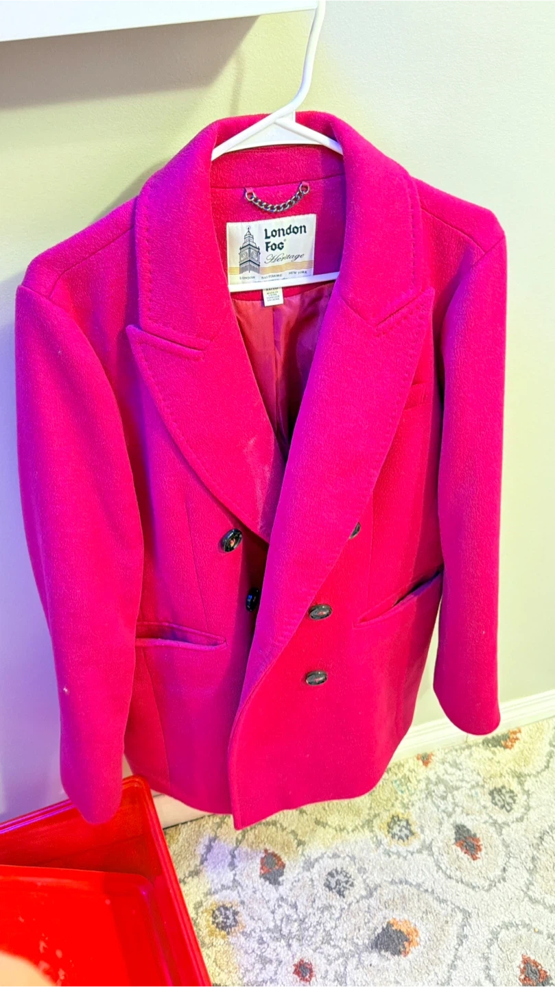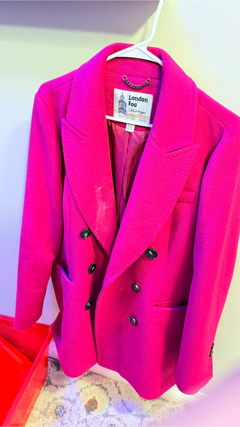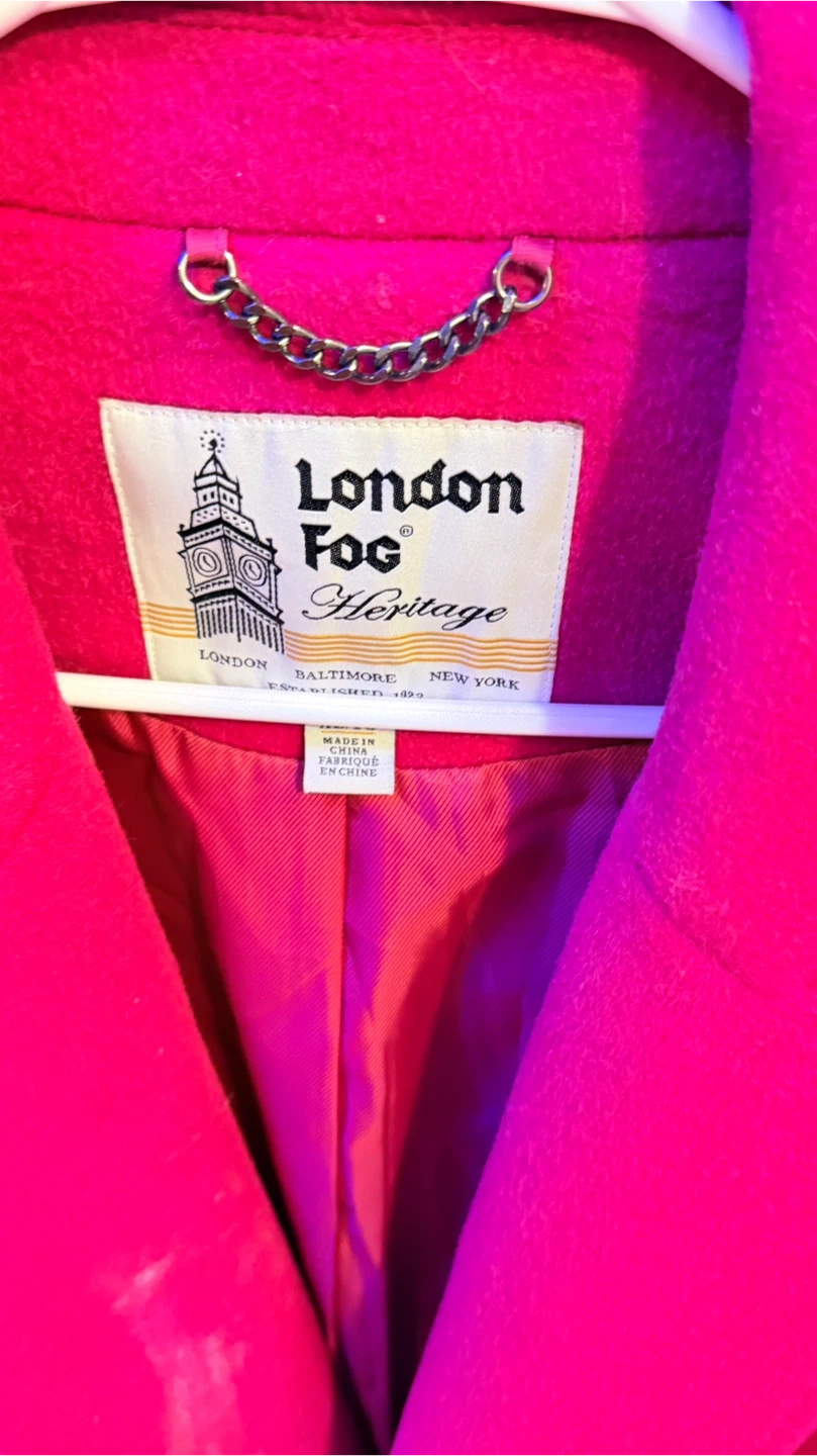 Selling a London Fog Heritage coat in a vibrant pink colour! It's a stylish double-breasted design, perfect for adding a pop of colour to your wardrobe. This coat is in great condition and ready for a new owner!