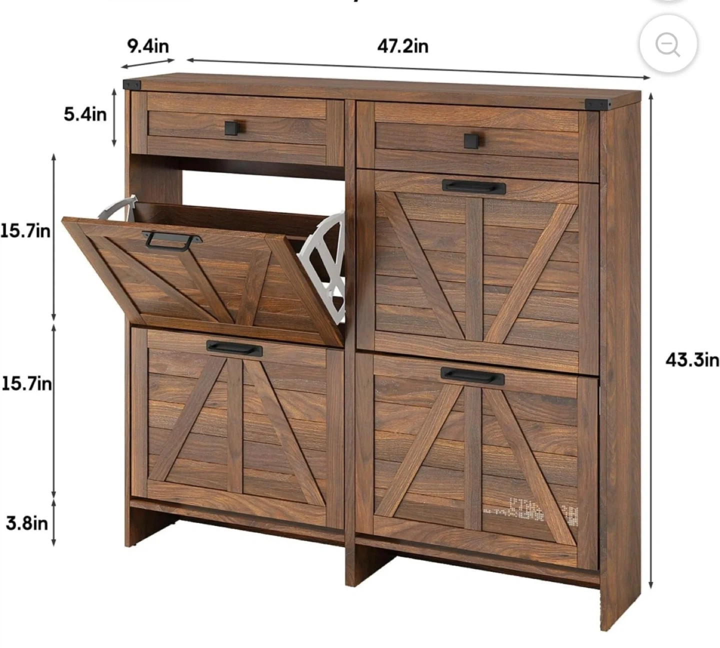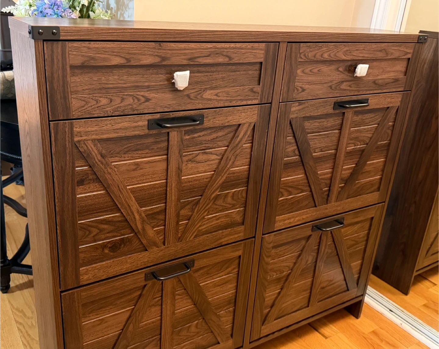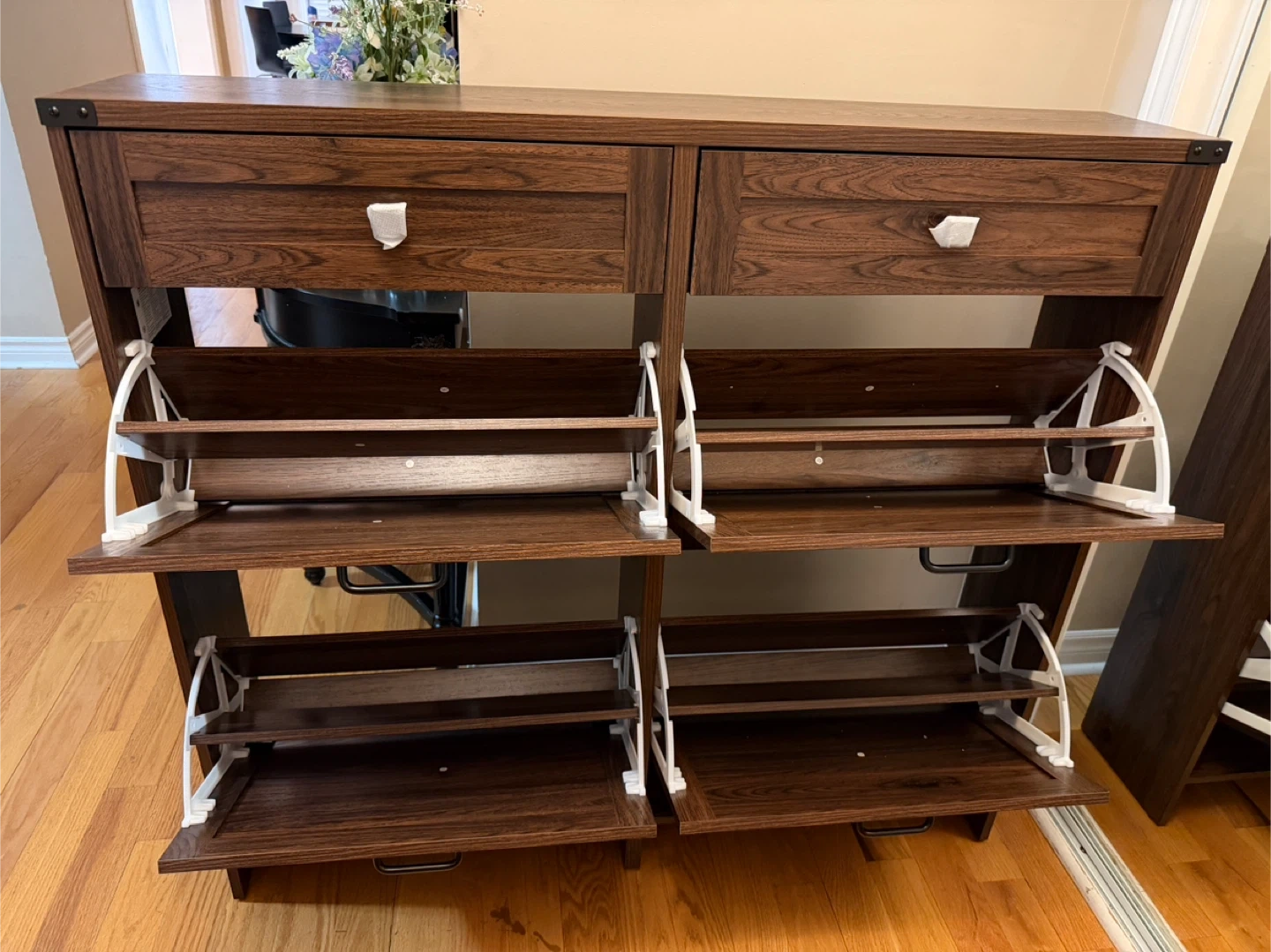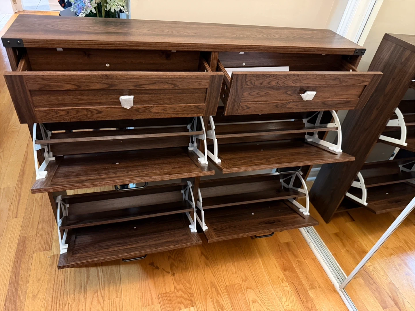 Dark Wood Entryway Shoe 4 Cabinets and 2 Drawers