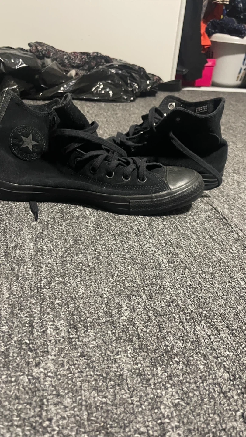 Selling a pair of Converse Chuck Taylor All Star high tops in black suede. The size is Men's 9 (US). They're in great shape and ready for a new home!