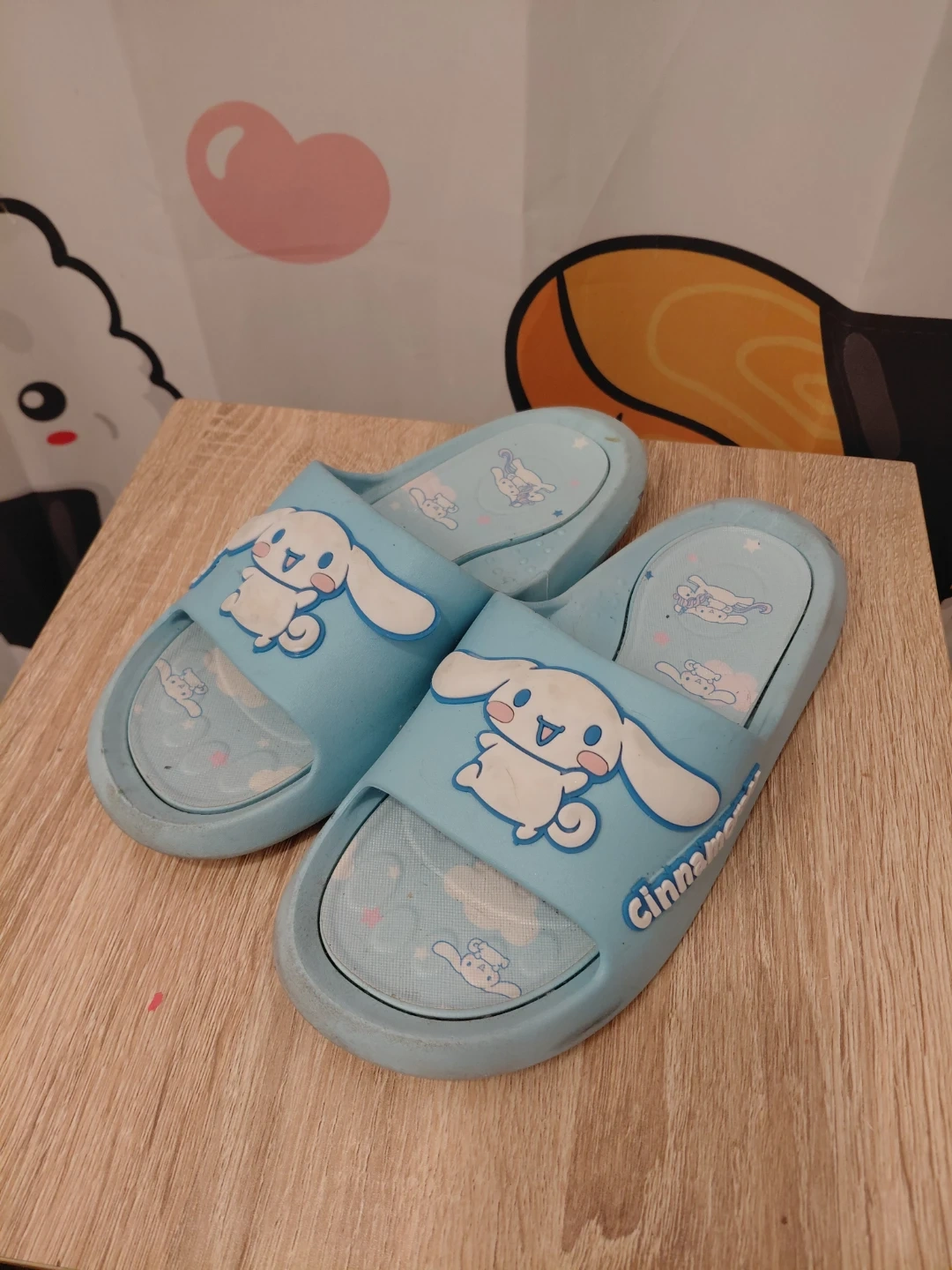 Cute pair of Cinnamoroll sandals in a lovely blue colour! They feature a fun Cinnamoroll design, perfect for adding a touch of whimsy to your day-to-day wear