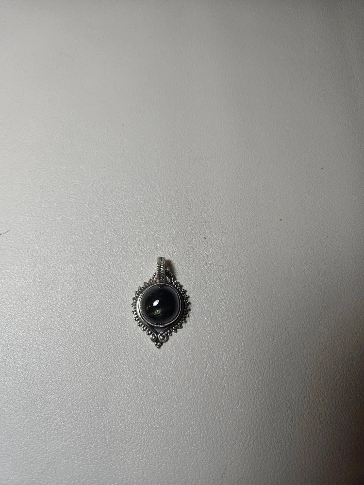 Here's a lovely black onyx pendant! It has a beautiful, classic design that would look great with any outfit.