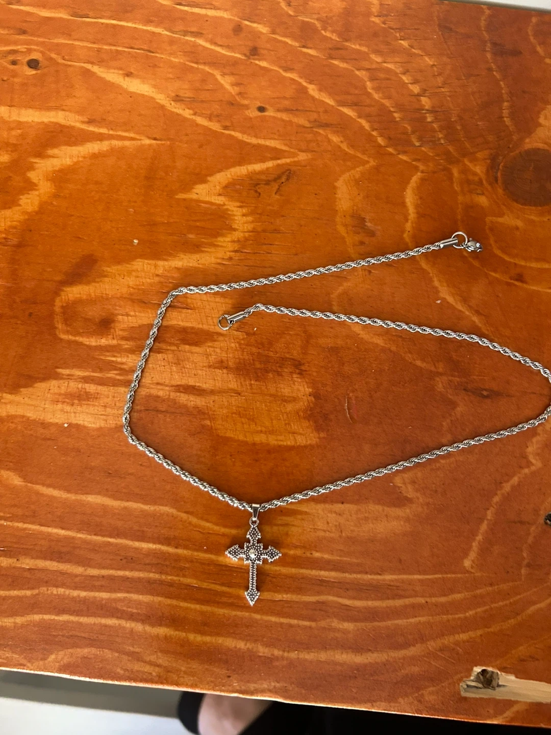Silver-tone Rope Chain Necklace with Cross Pendant