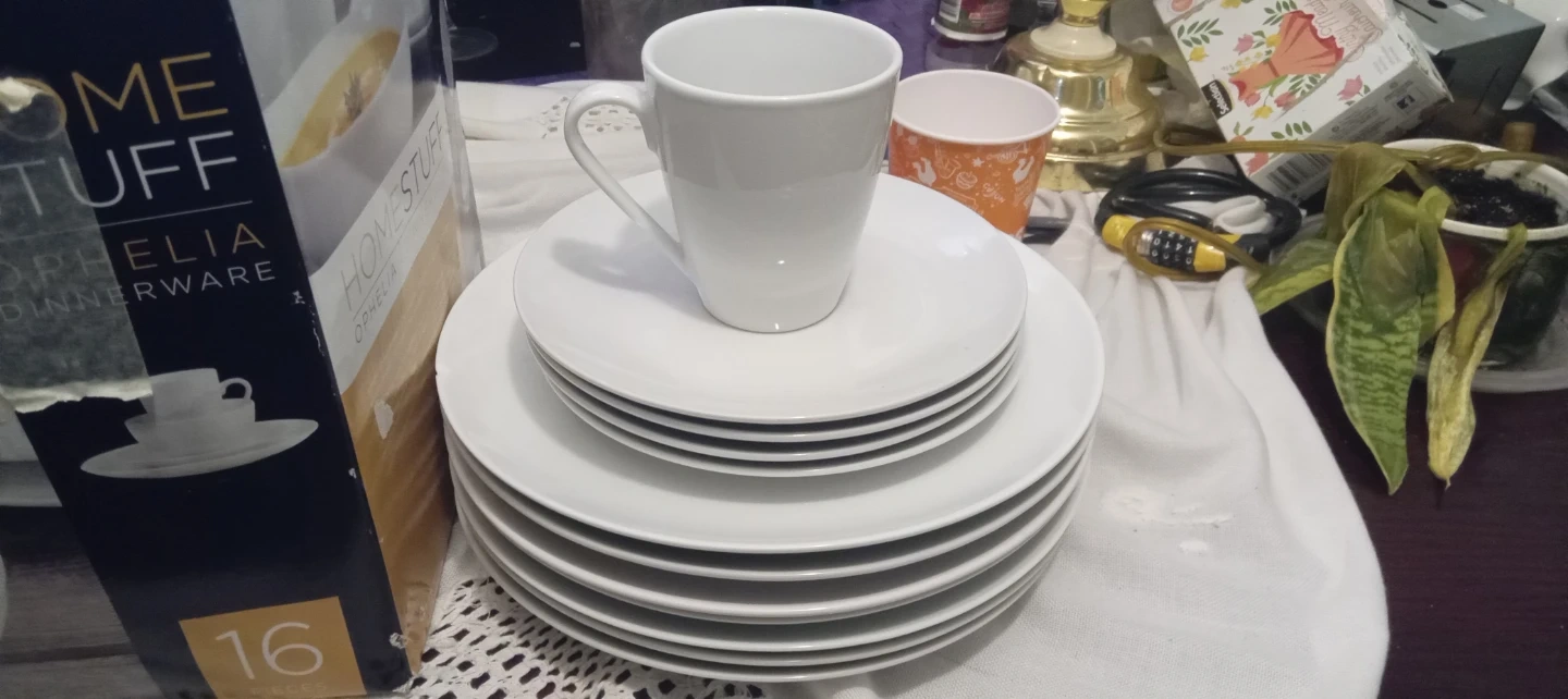 Selling a brand new Home Stuff Ophelia 16-piece dinnerware set! It's a complete set for your dining needs and comes in its original box
