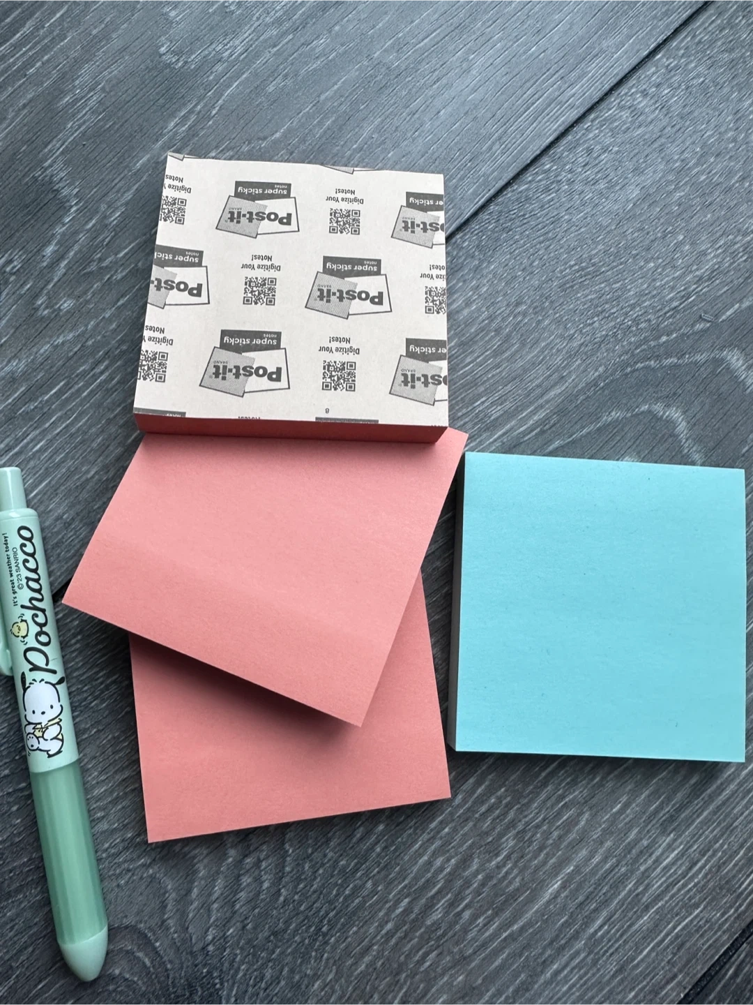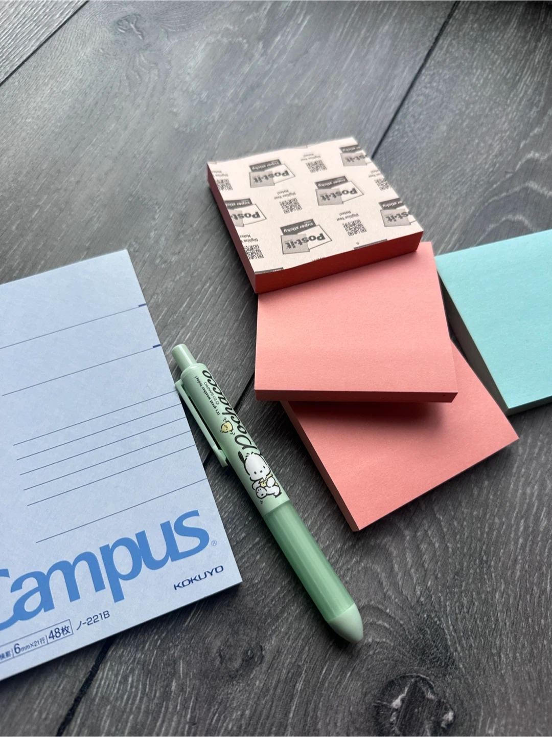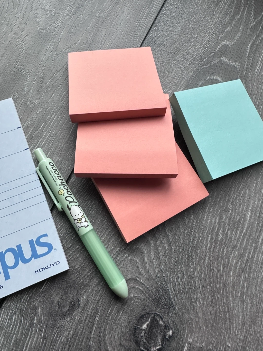Stationery bundle - all for $5! New notebook (small size - see last image for lip gloss for size comparison), a set of Post-it notes in coral and teal, plus a cute green Pochacco pen. Pochacco pen is used but still works well. The Post-it notes are super sticky and perfect for quick reminders or notes. Pickup at 403 Church St, cash ONLY.