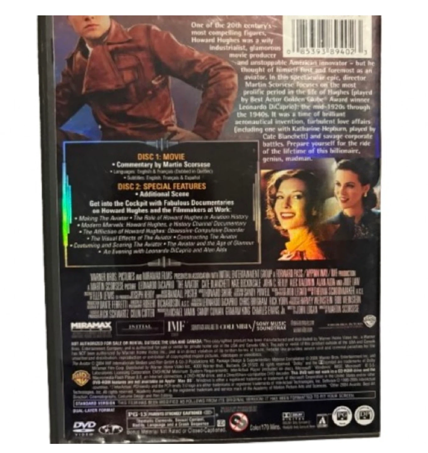 Critically acclaimed biographical drama directed by Martin Scorsese and starring Leonardo DiCaprio as aviation pioneer and filmmaker Howard Hughes. This 2‑disc edition includes the full feature film plus extensive special features, documentaries, deleted scenes, and behind‑the‑scenes content. Discs play perfectly; case shows minimal shelf wear.