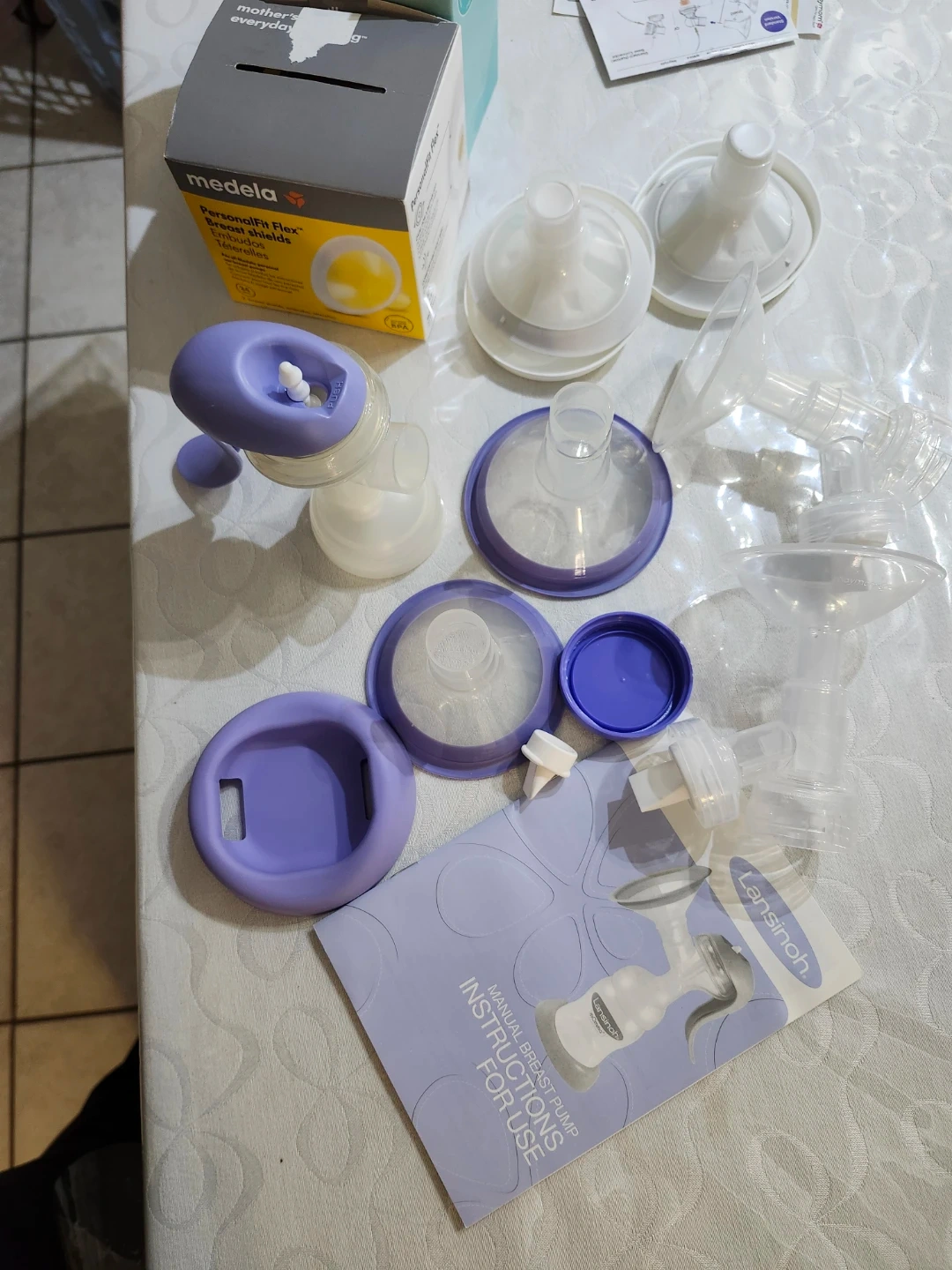 Includes Medela PersonalFit Flex breast shields and Lansinoh manual breast pump accessories. All parts are made of BPA-free plastic. Perfect for mothers who need versatile pumping options. Don't have the bottles of the bump it's from 2 different bumps. The Lansinoh only used a few times. The other parts never used