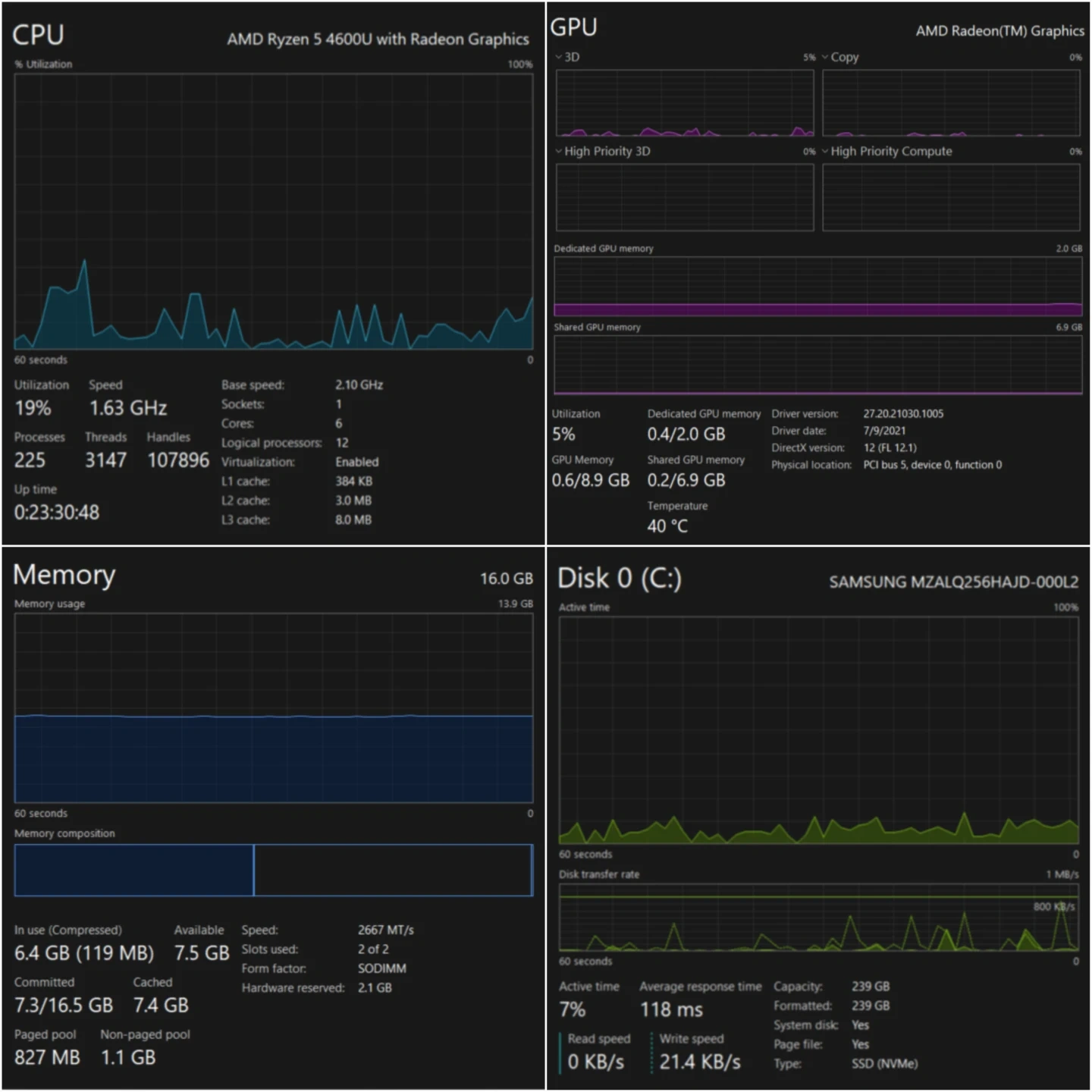 AMD Ryzen 5 4600U CPU @2.10 with turbo boost technology.
