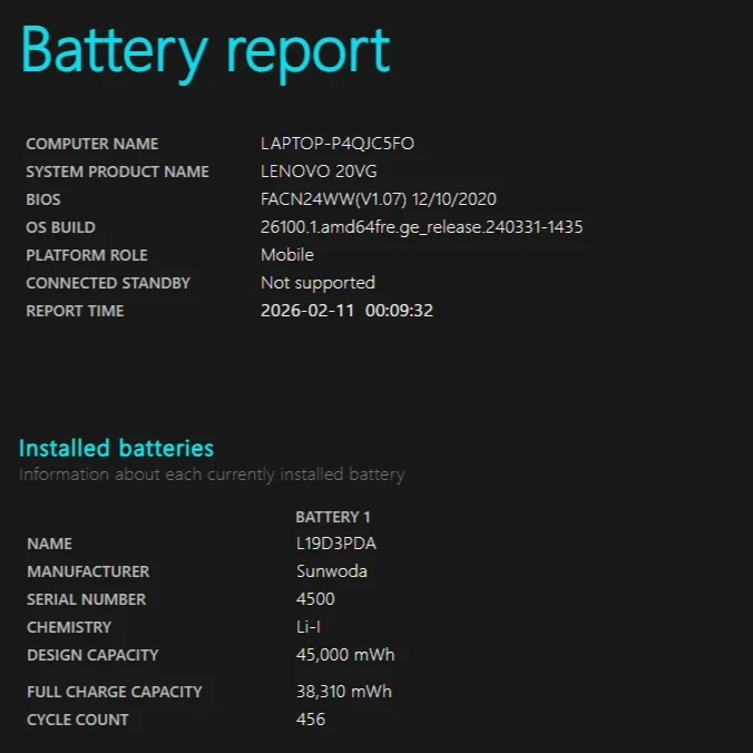 Excellent battery life (Battery report attached) and comes with Original Lenovo USBc 65W Charger.