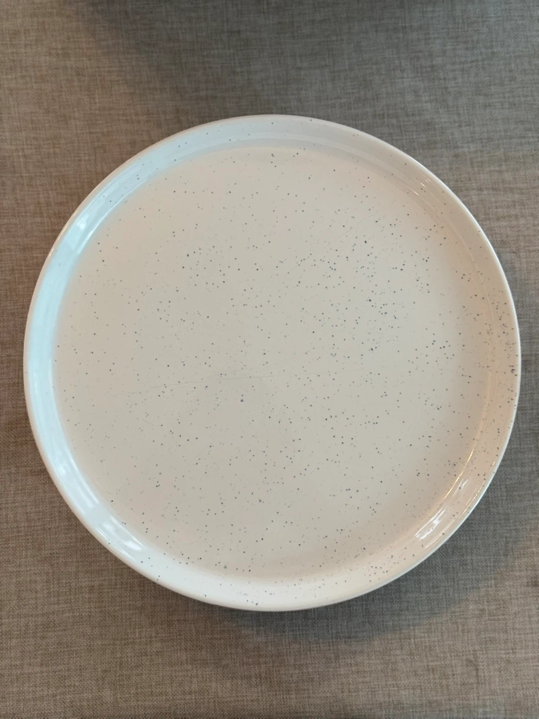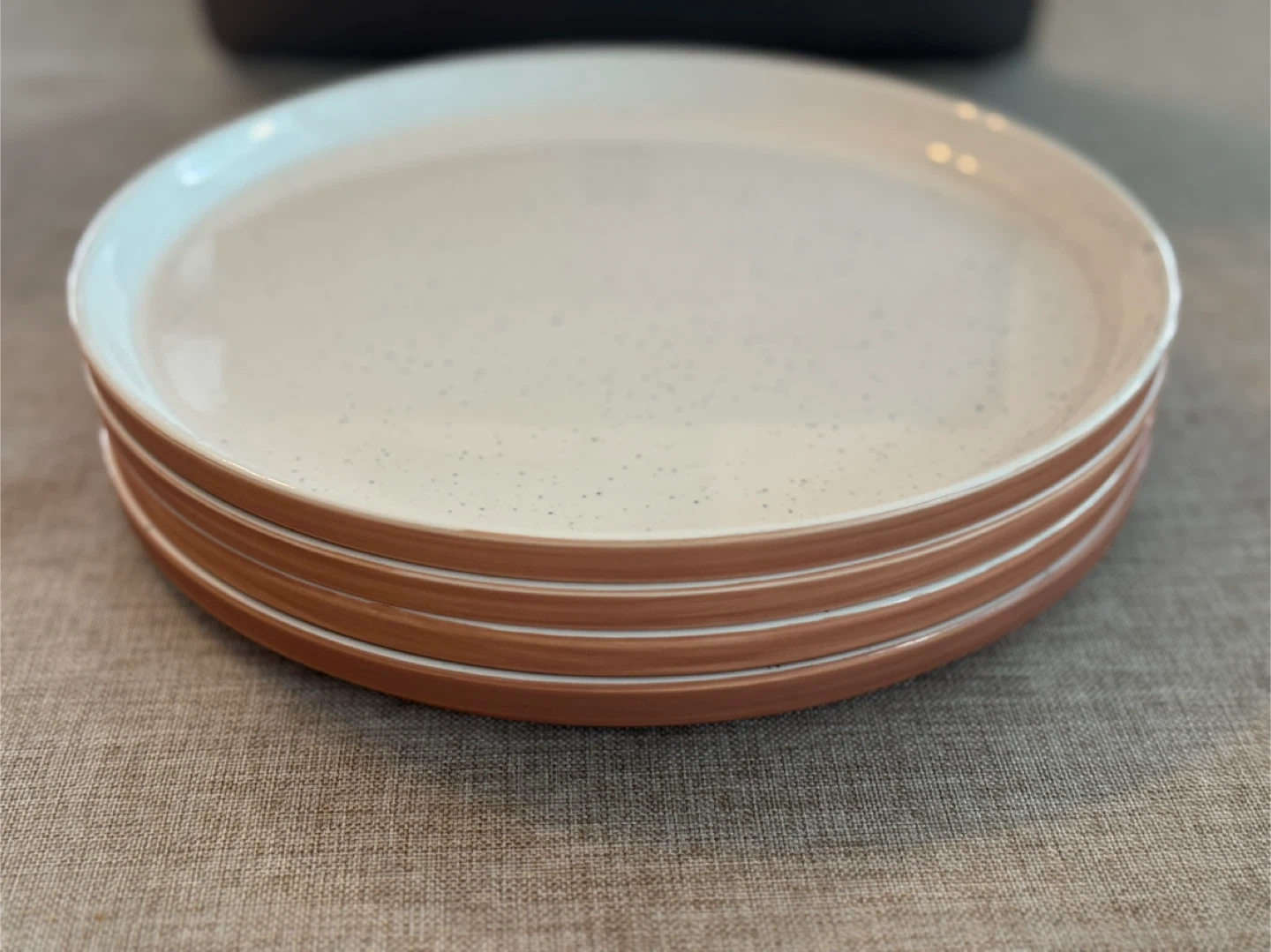 A set of four large hand-speckled ceramic dinner plates from Our Place (makers of AlwaysPan).