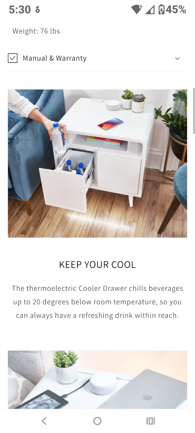 This Sobro Smart Side Table is perfect for keeping your drinks cool and your devices charged! It features: