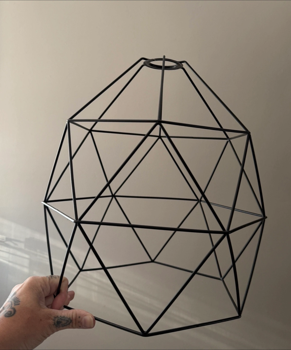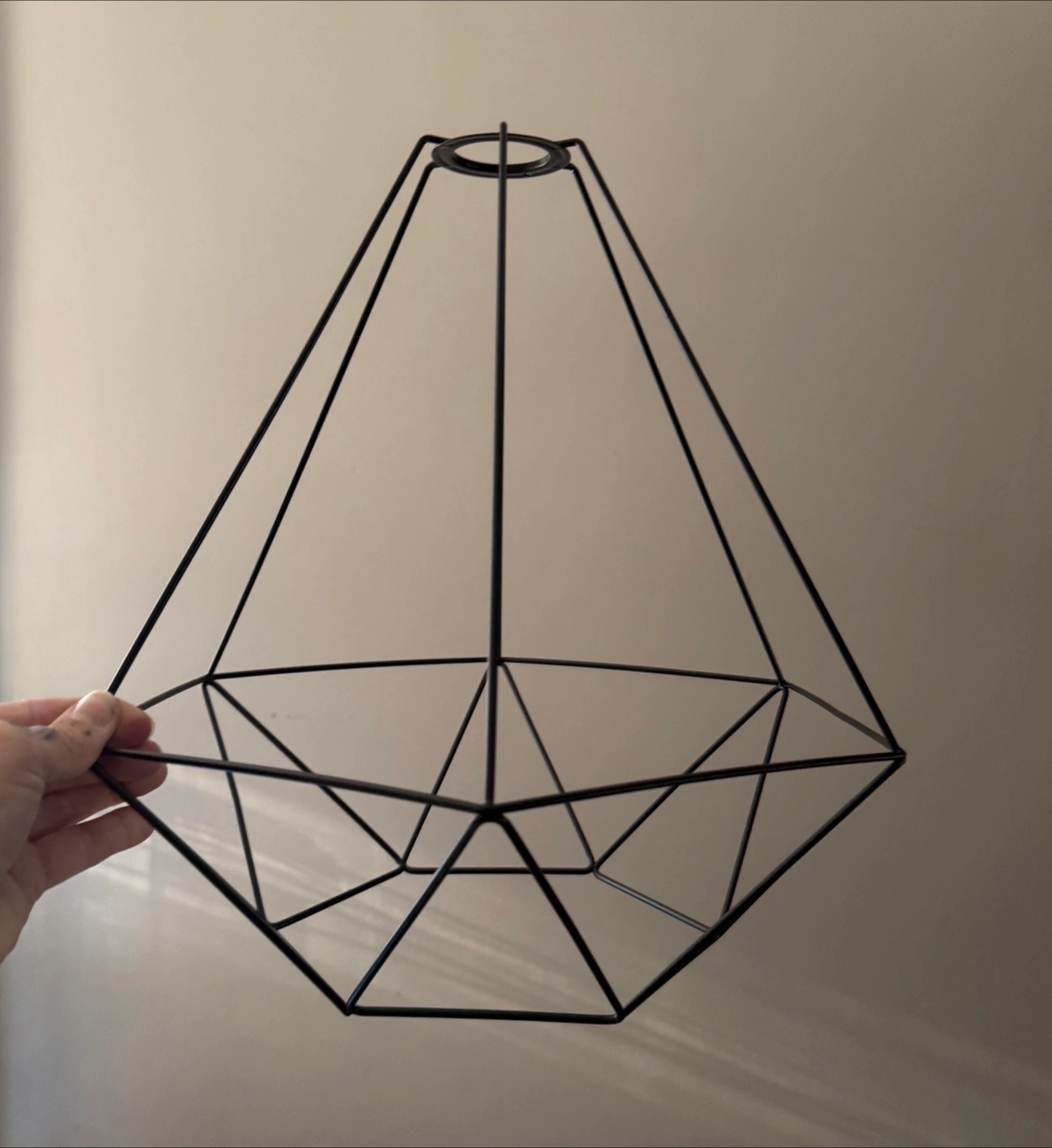 Selling 4 black wire geometric lamp shades, 2 of each style. 14” in height and 13”ish widest point NEVER USED - was wrapping with twine but went different direction. $20 for all 4