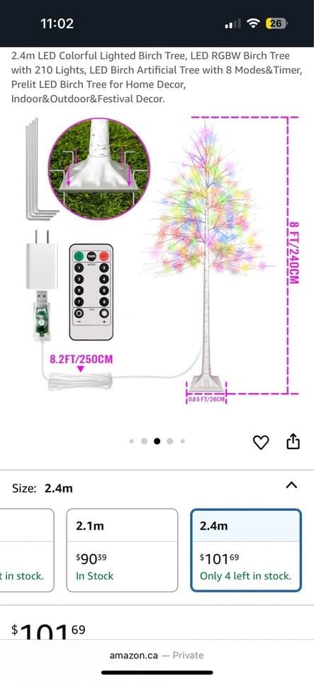 2.4m (8FT) LED Colorful Lighted Birch Tree