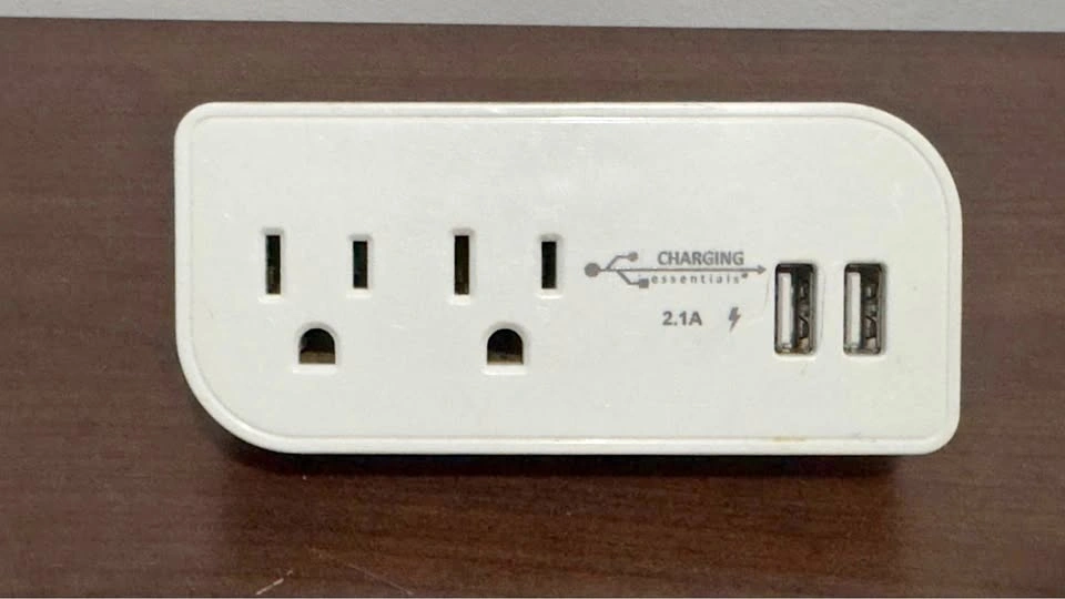 87Portable, Sleek and Convenient Charging Station with a Built-in Device Shelf Two AC Outlets: 15A, 125V, 60Hz, 1875W Two USB-A Ports: 2.1A Max, DC5V Plugs Directly Into a Standard 15 Amp Wall Outlet Cruise Ship Approved