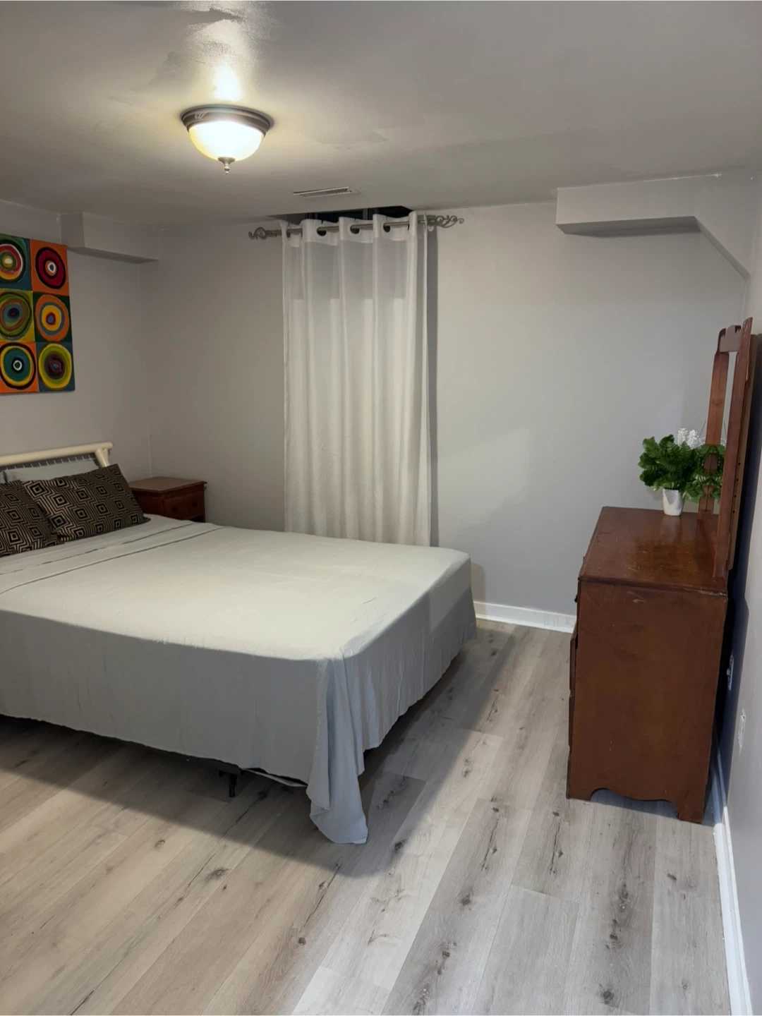 83Fully Furnished two bedroom for rent in basement that is newly painted and updated, Separate entrance at the front of house. The two rooms is available immediately, shared bathroom, kitchen and utilities are included, with parking available. Included: Queen size bed Side table Dressed Couch Accent chair TV stand Fill refrigerator Stove Microwave McLaughlin & Steele, close to public transit, shoppers world mall, stores, Sheridan college. No pets allowed. No smoking. Call Faith - four-three- seven -707-7897 $1000 per room /month includes utilities, internet, laundry. Please contact for showing. *if this ad is up, then it’s still available