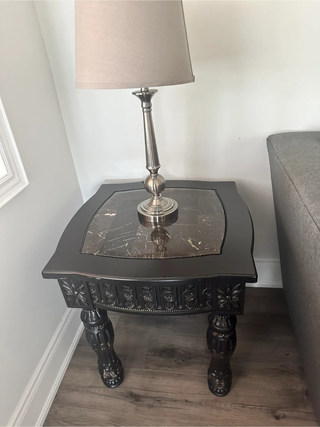 Black Nightstand with Glass Top