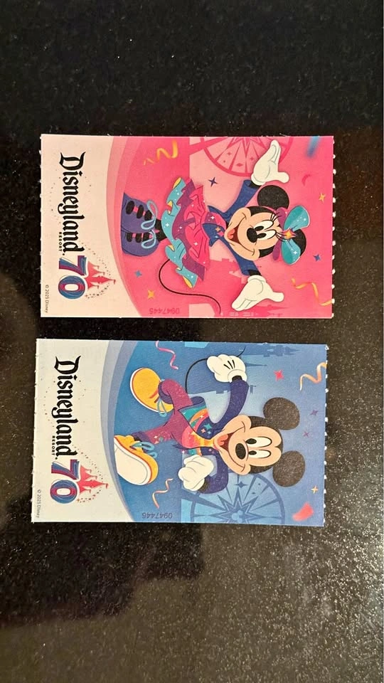 Two Disneyland theme park tickets for use at either park in Anaheim, California. They are valid until December 30th, 2026. Can be used anytime. Bought both for just over $250 or roughly $345CAD. $200CAD for the pair