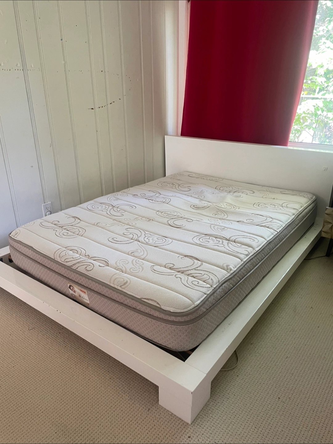 two platform double bed frames complete with mattresses. These items have been previously loved and are in good condition with one of them having a broken slate (second from bottom) but still work fine and very stable. pickup only. sunday 2-4 wednesday 11-1