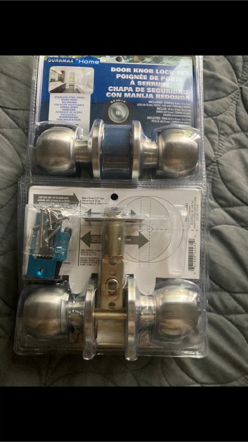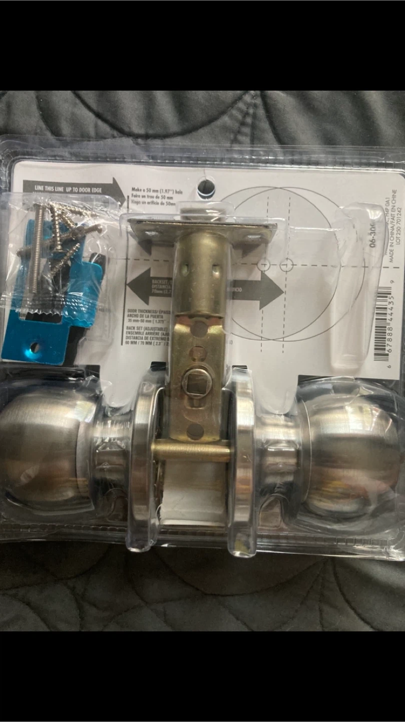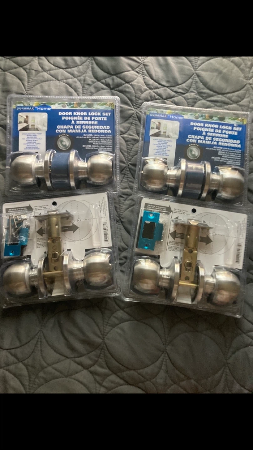 These are brand new still in factory sealed packaging, stainless steel privacy interior door knob sets. No they don’t have keys, they are locking like your bathroom door and can be unlocked though with a cue tip or a pen. These are almost $30 each in stores but I’m only asking $10 each or $15 for 2 sets of these FIRM