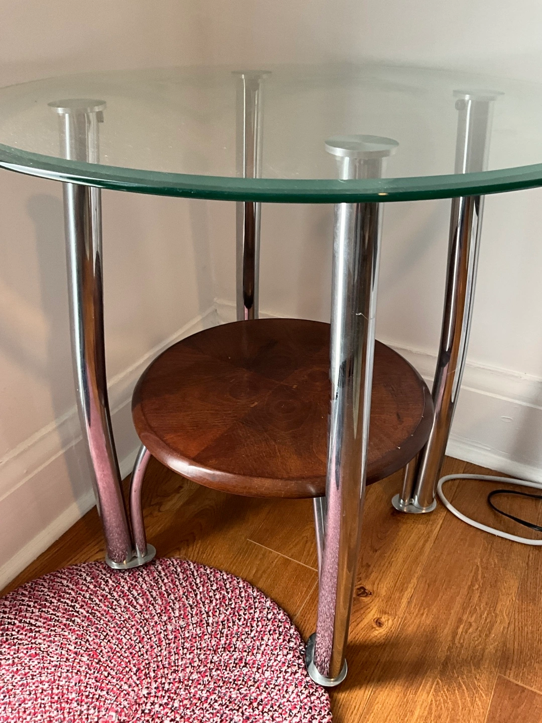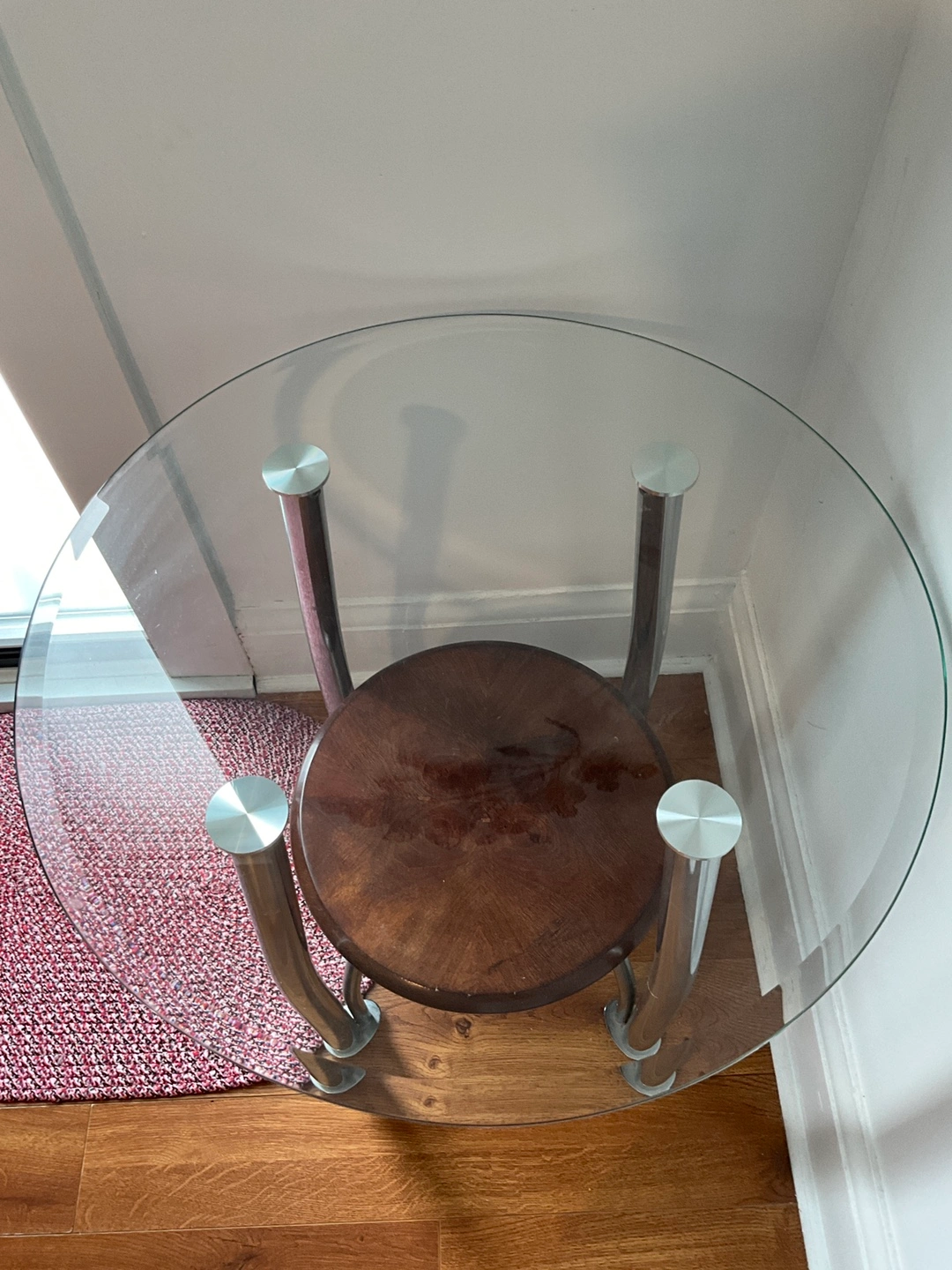 Vintage Scandinavian Round Teak & Glass Coffee Table