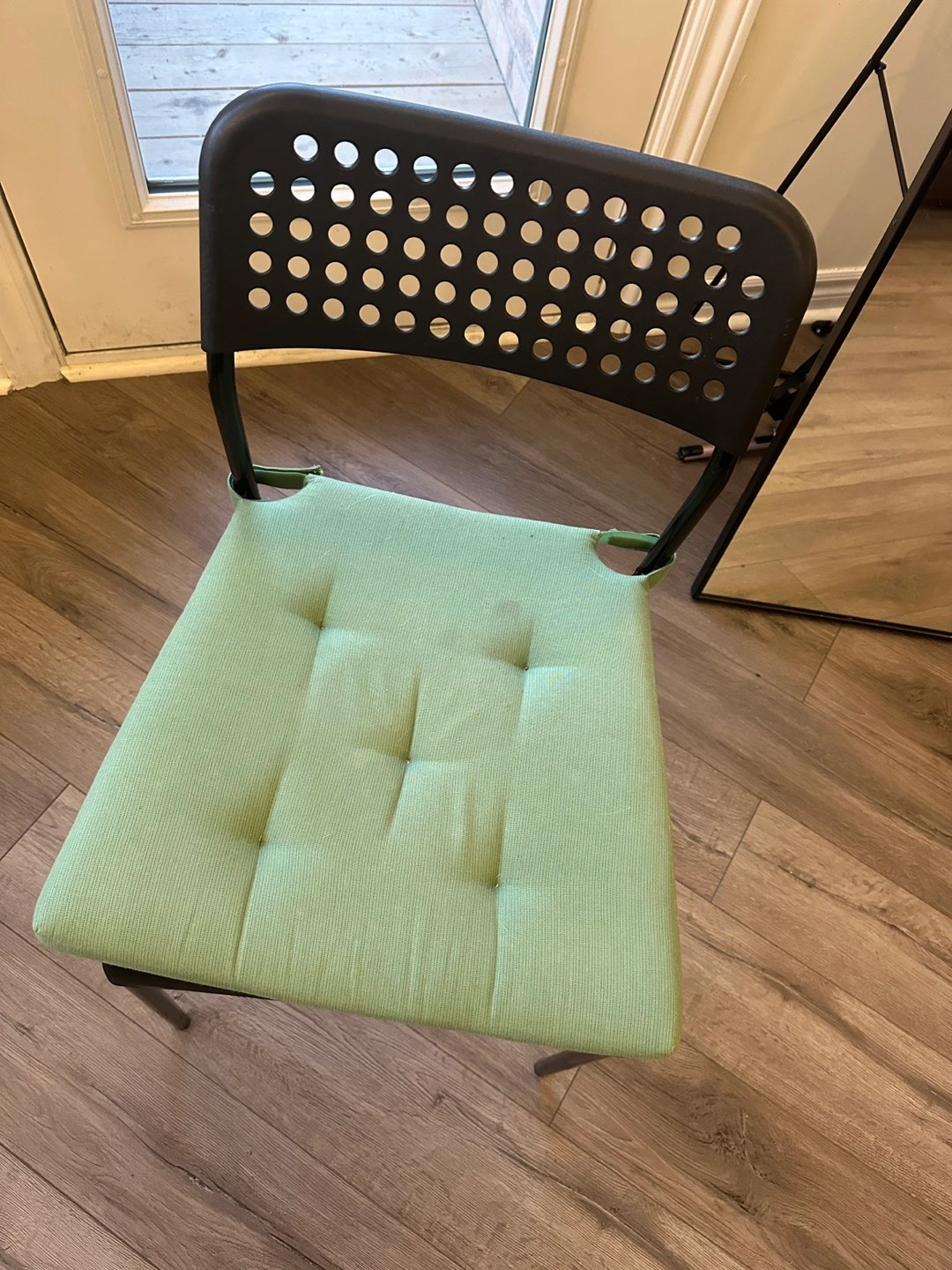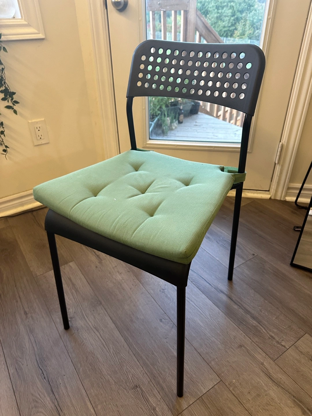 390Ikea chair with cushion - very good condition! $10 per set (chair and chair pad) $18 for 2 sets Full price for one set is 28 after tax. Now you can save $18!!! Save $38 if you get 2 sets!