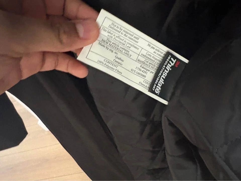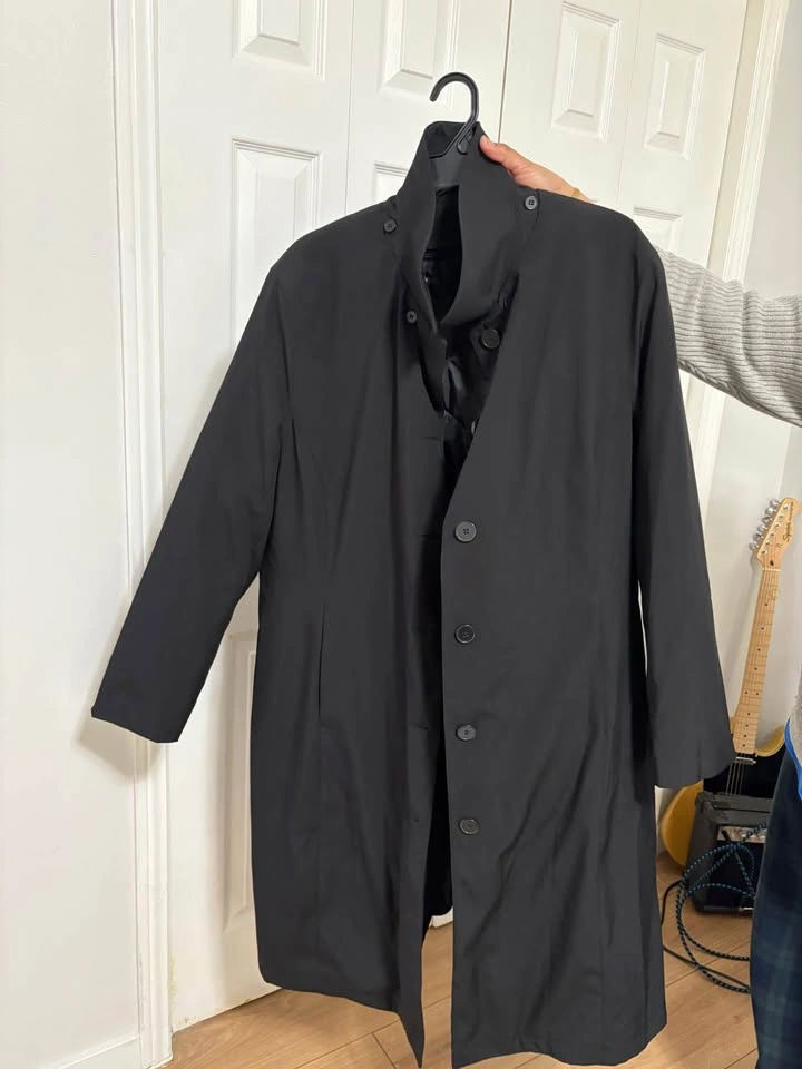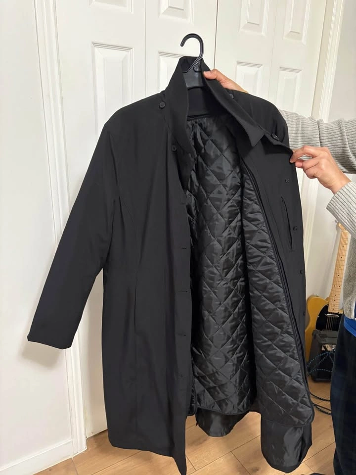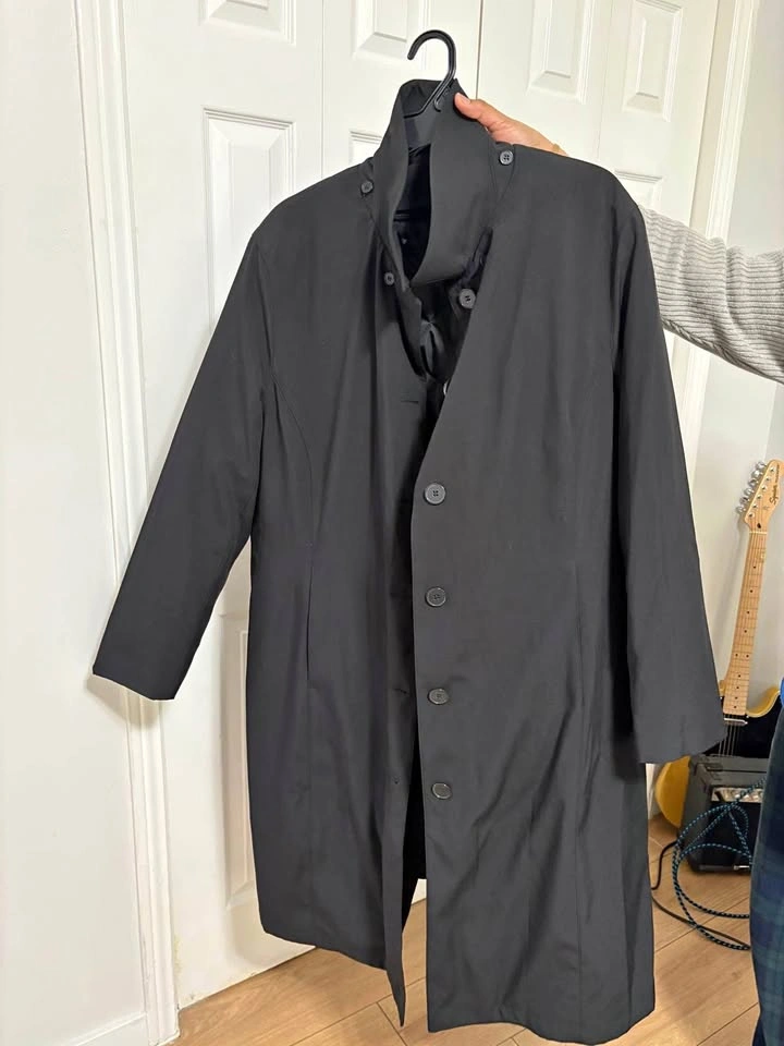65I never wore this. It's almost new. You can use the zip inside to reveal another wind jacket for the fall, and put them together for the winter. It has multiple pockets and no stains or rips anywhere. From a smoke and pet free home.