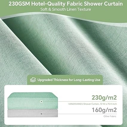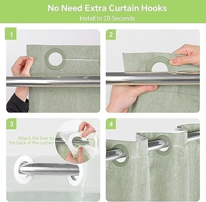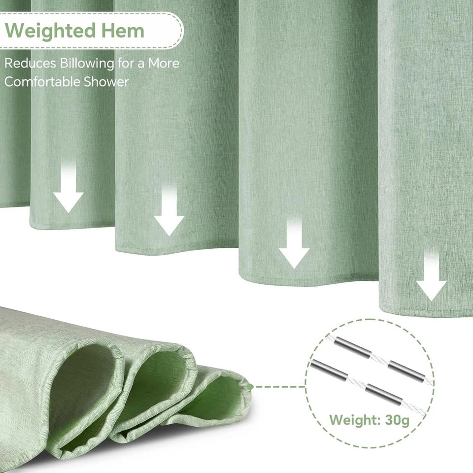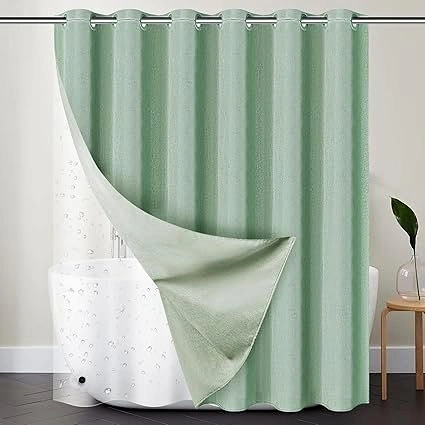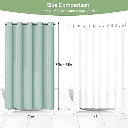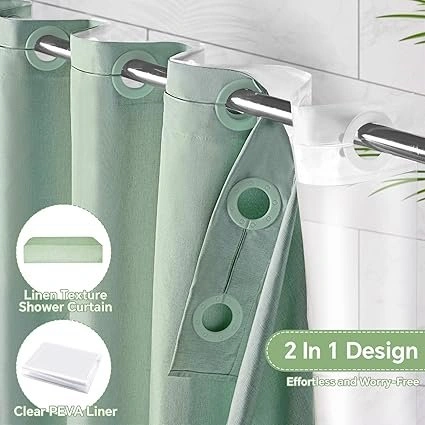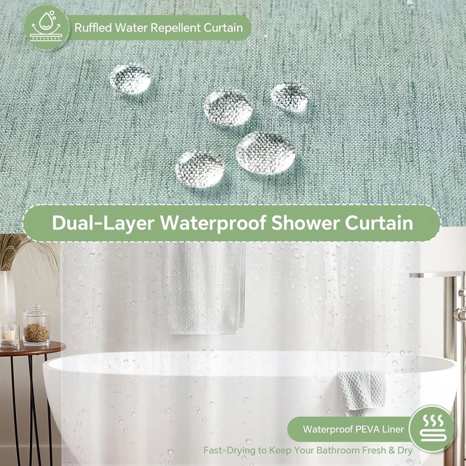 Brand new in box. 2 in 1 No Hook Linen Texture Shower Curtain Set with PEVA Shower Liner Hotel Style Double Waterproof Shower Curtain, 230GSM Heavy Duty Fabric, Weighted Hem, Washable Bath Curtain, 72 x 75in, Green. Meet up at 40 Lavery Trail Scarborough or 280 Donlands Avenue.
