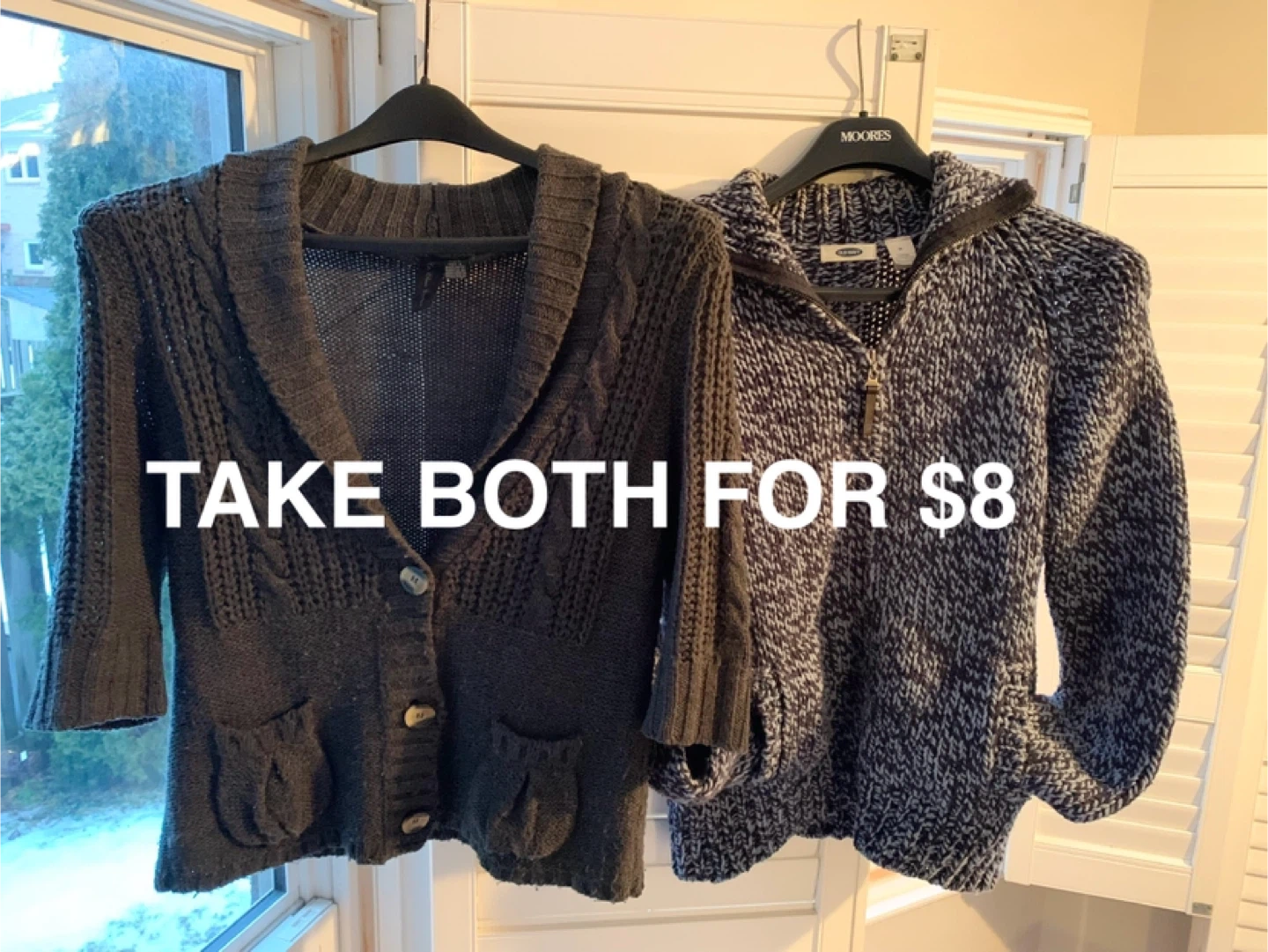 Gently worn (like NEW) condition. TAKE BOTH (or leave both) for only $8 CAD. Medium size. Smoke free home. MEET-UP LOCATION (no mail. / no delivery): - Public Meet-up: McLean Community Centre (95 Magill Dr. Ajax corner of Westney/Magill)… OR … - Door Pickup: 1 block from the Centre (address to be provided on the day of pickup) SERIOUS BUYERS ONLY / FINAL SALE / Cash Payment at pickup / NO HOLDS (Items will be sold on a FIRST-COME/PAYMENT-FIRST-SERVE basis!)
