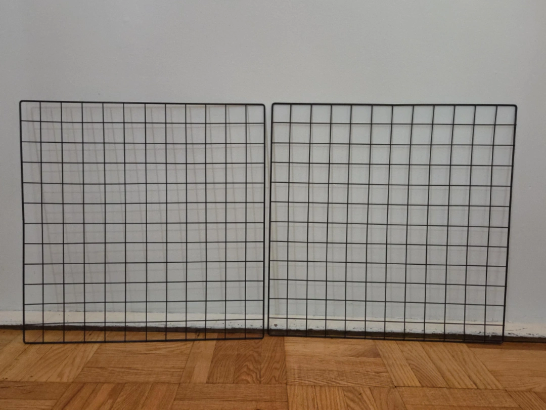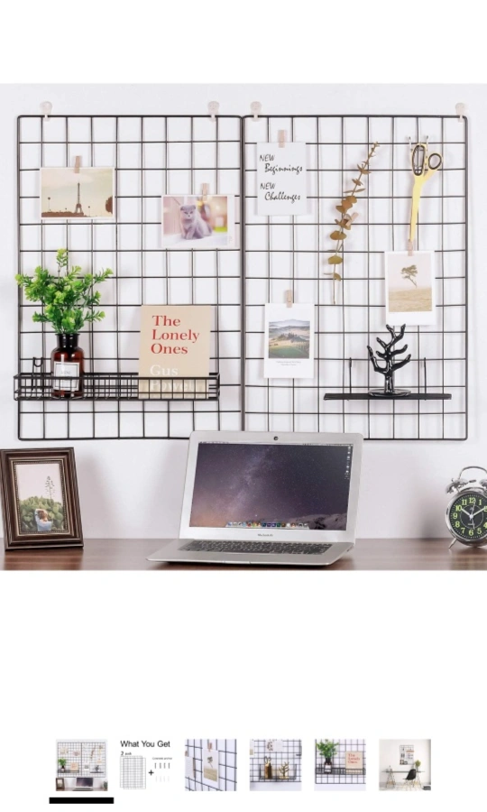 Two metal grid wall panels in black. Great condition. Perfect for organizing and displaying photos, notes, or small items. For pickup.