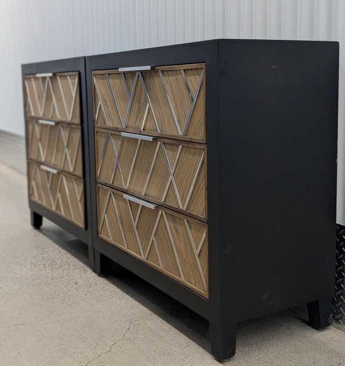 2 oversized nightstands originally from Homesense They are NOT real wood They could be a good quick project pieces or with the right decor placement,could be used as is . Super light but sturdy and they do have good presents about them( front looks great ,body - not so much) but definitely could use some TLC 32"W × 16" D × 32" H Pick up in Whitby