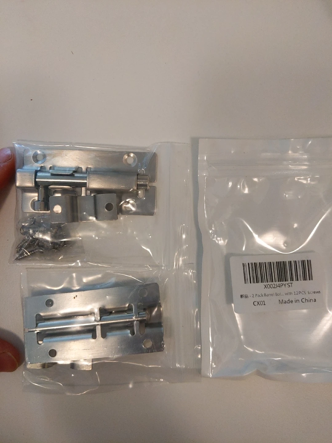 26Selling a new 2-pack of barrel bolts, still in the original packaging! Each pack comes with 12 screws. Perfect for adding extra security to doors or cabinets