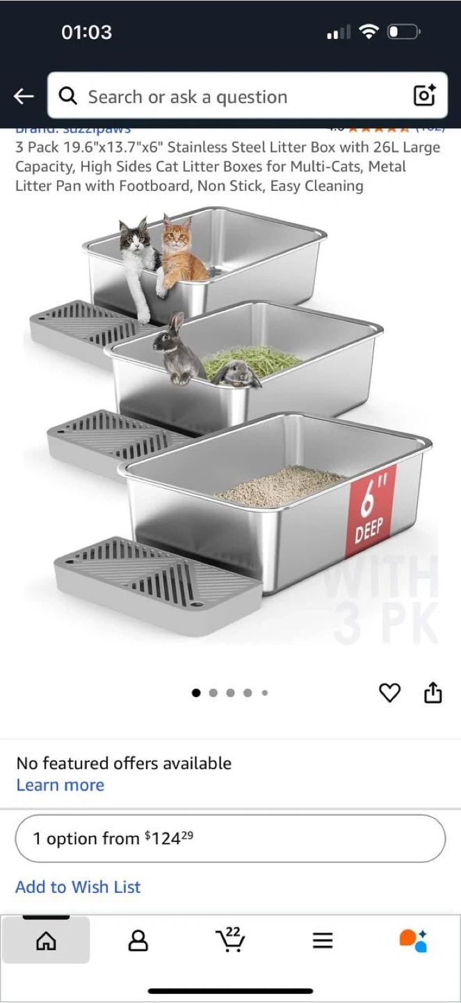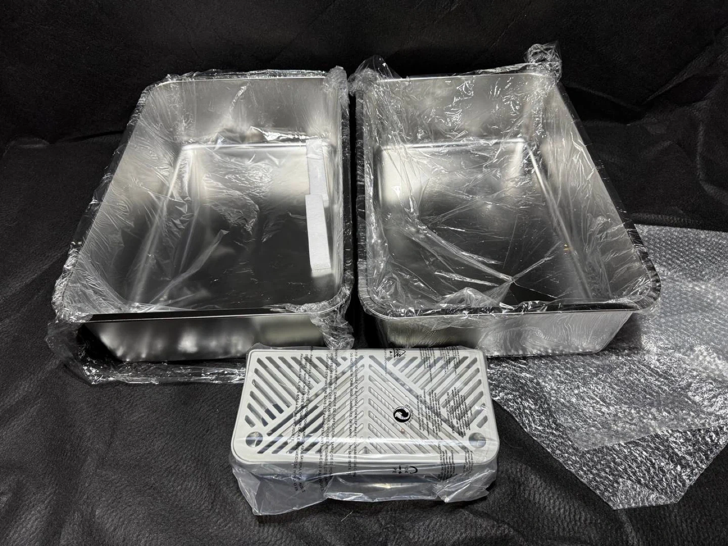 2 Pack Stainless Steel Cat Litter Boxes with Footboard – 23.6” x 16” x 6” – New in Box 🐾 Premium stainless steel litter pans – durable, rust-resistant and easy to clean 🐾 High sides (6”) help prevent litter scatter 🐾 Includes non-slip footboard for cleaner paws 🐾 Hygienic & odor-resistant, much safer than plastic 🐾 Perfect for multi-cat households ✅ Brand new, never used, still in original packaging 💲 Price: 90 CAD for the set (2 pieces)