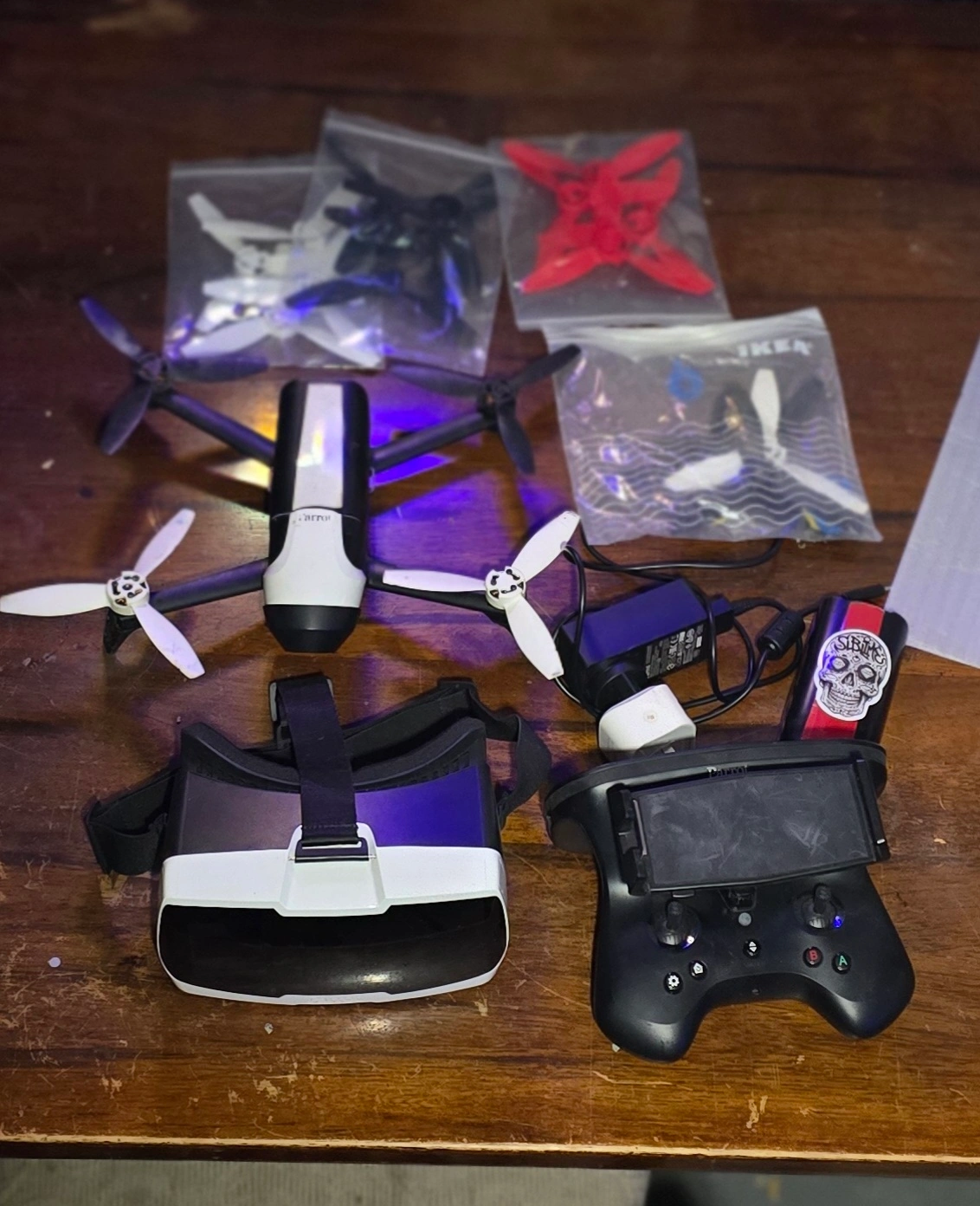 Selling 2 Parrot Bebop Drones It comes with a VR headset, controller, charger, and extra propellers. The original box is included too Bebop 2 works but needs work or parts Drone both needs new batteries best offer takes it all