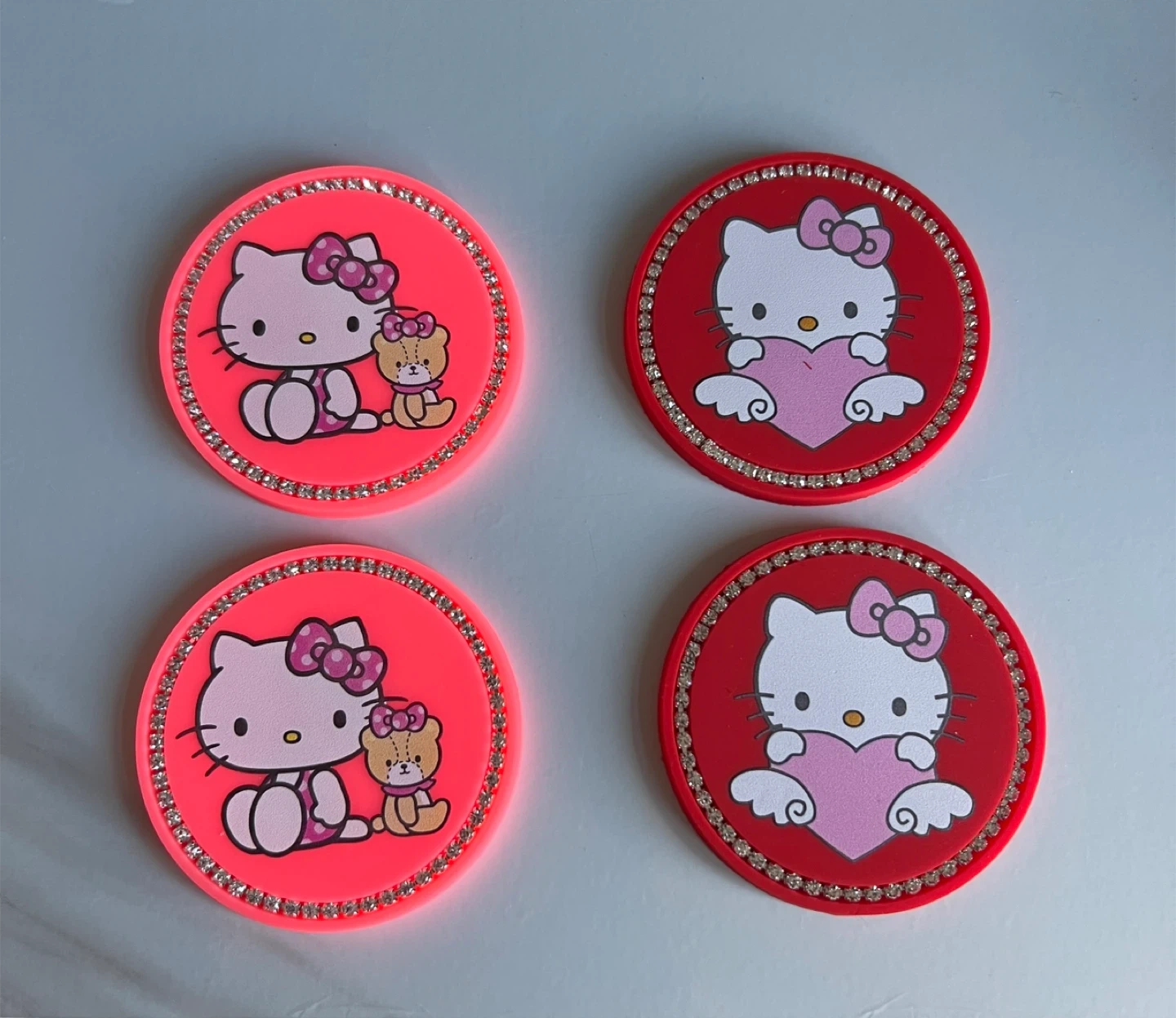 47Super cute Hello Kitty coasters! You get a set of two, bright pink or red. They're perfect for adding a touch of kawaii to your car decor