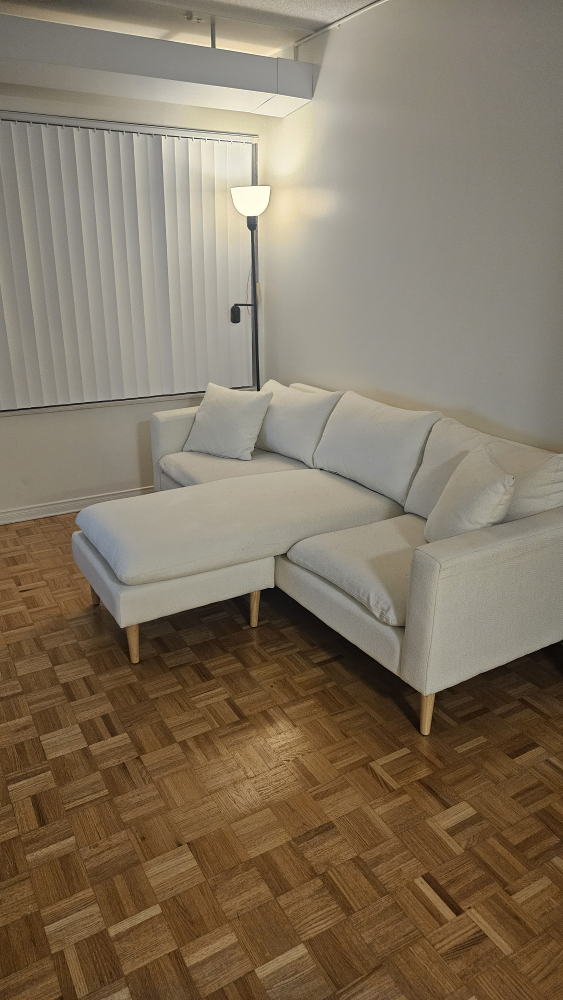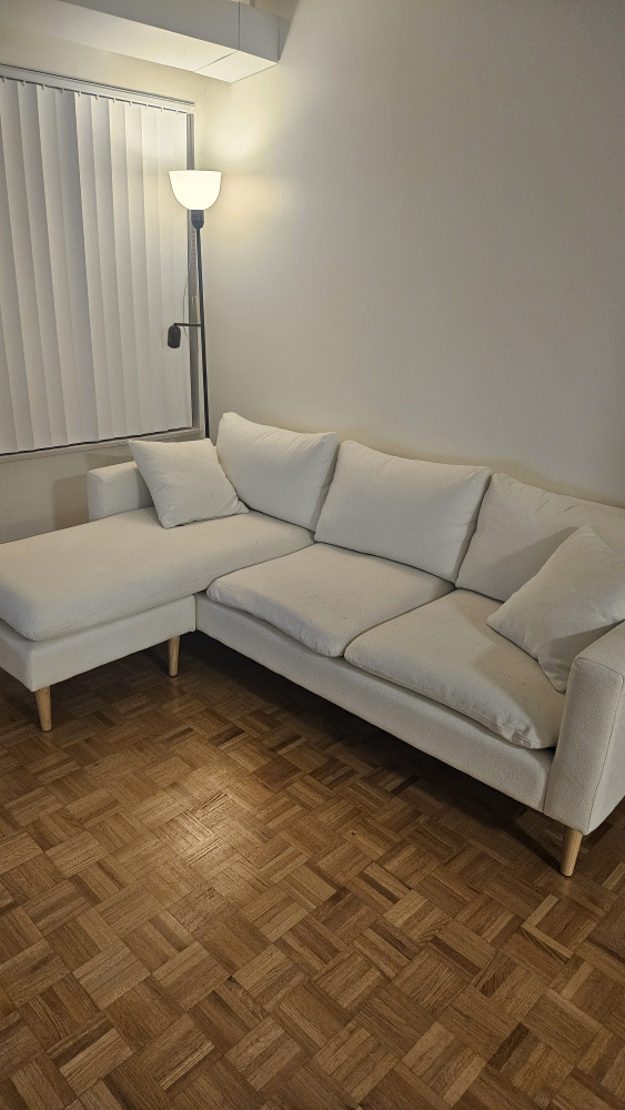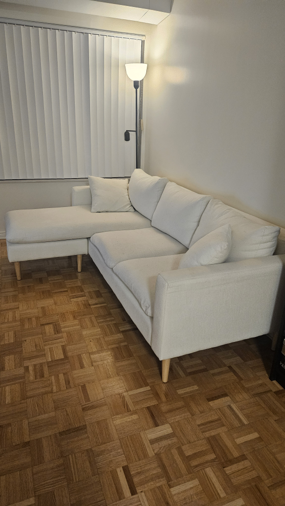 Dimensions: 34'' H X 87'' W X 33'' D Details: Seats 4 Reversible and detachable back cushions can be washed. Detachable seat cushion can be washed. 2 Toss Pillows included Chaise can be moved right, left. or centered Condition: Sectional Assembled Already 1 year old - Purchased Jan 2023 No stains/rips Price: Now: $700 Original Price $1,514.18 including tax & delivery Purchased a new sofa. No longer need. SERIOUS INQUIRIES ONLY. Offering curbside pick up only.