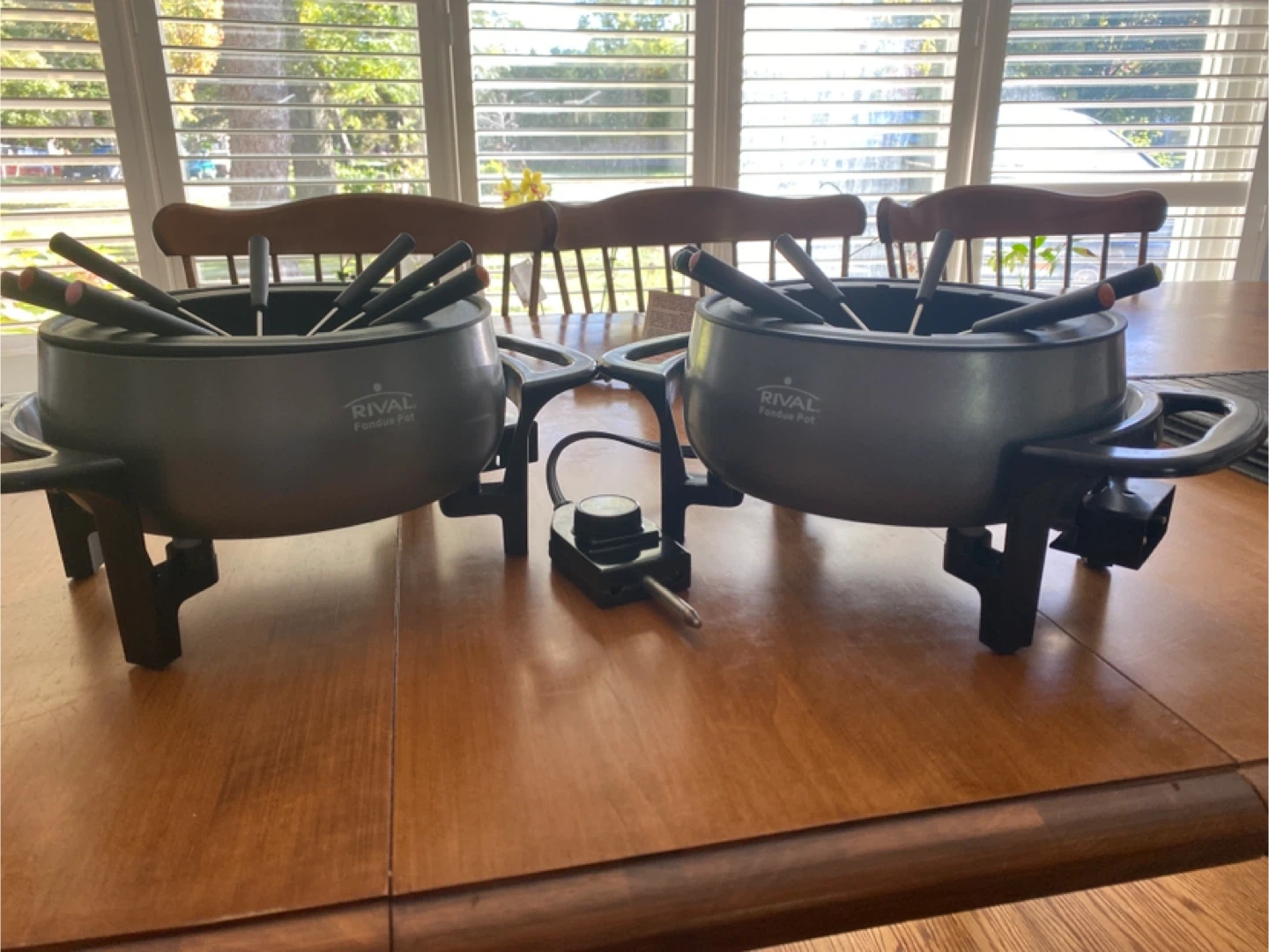 Selling 2 Rival Fondue Pot sets, comes with the pot, temperature control, and fondue forks. Perfect for a cozy night in or a fun gathering with friends and family