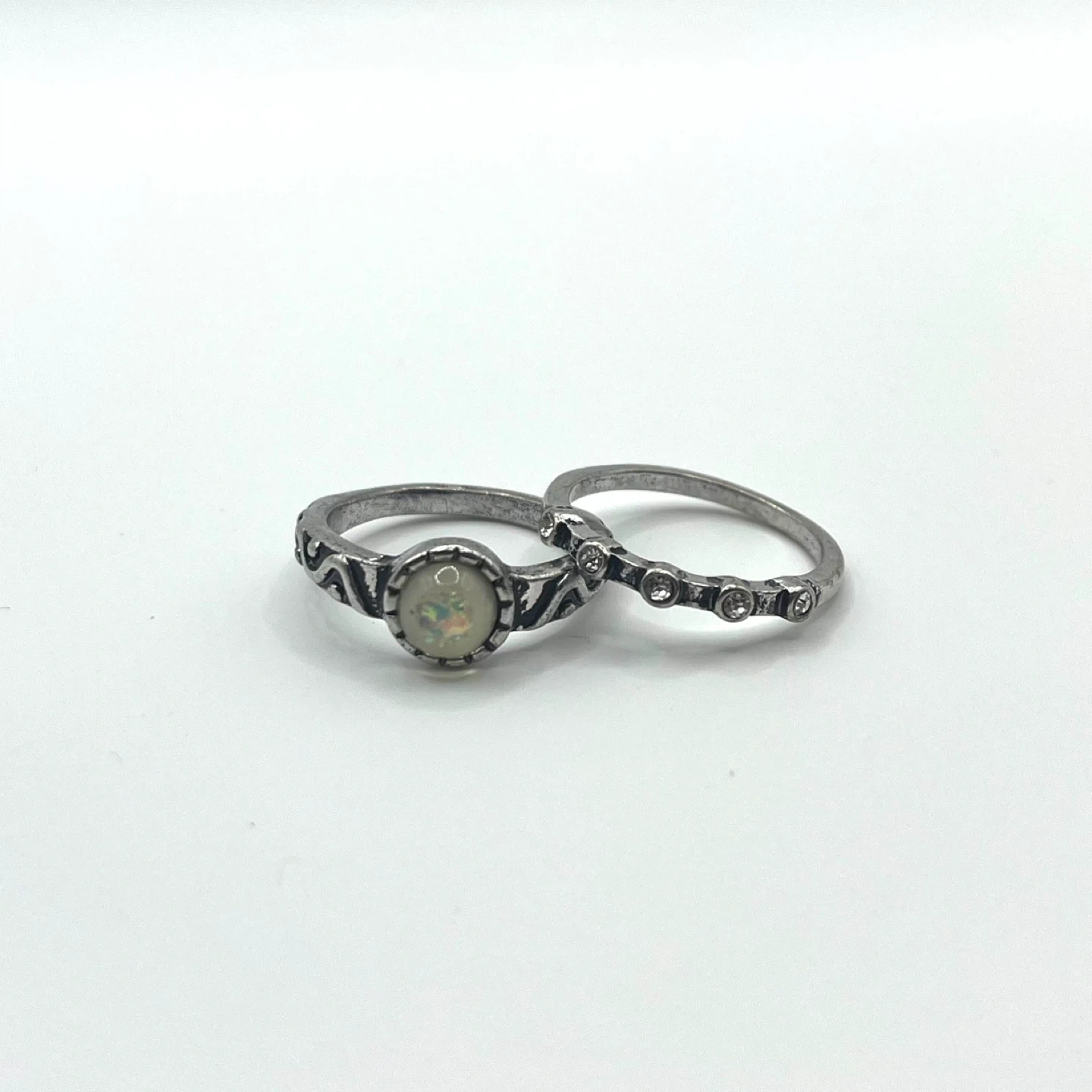 23Selling a set of two silver-tone fashion rings. One ring features a circular stone, and the other has small embedded stones. π They're in great condition and ready for a new home!