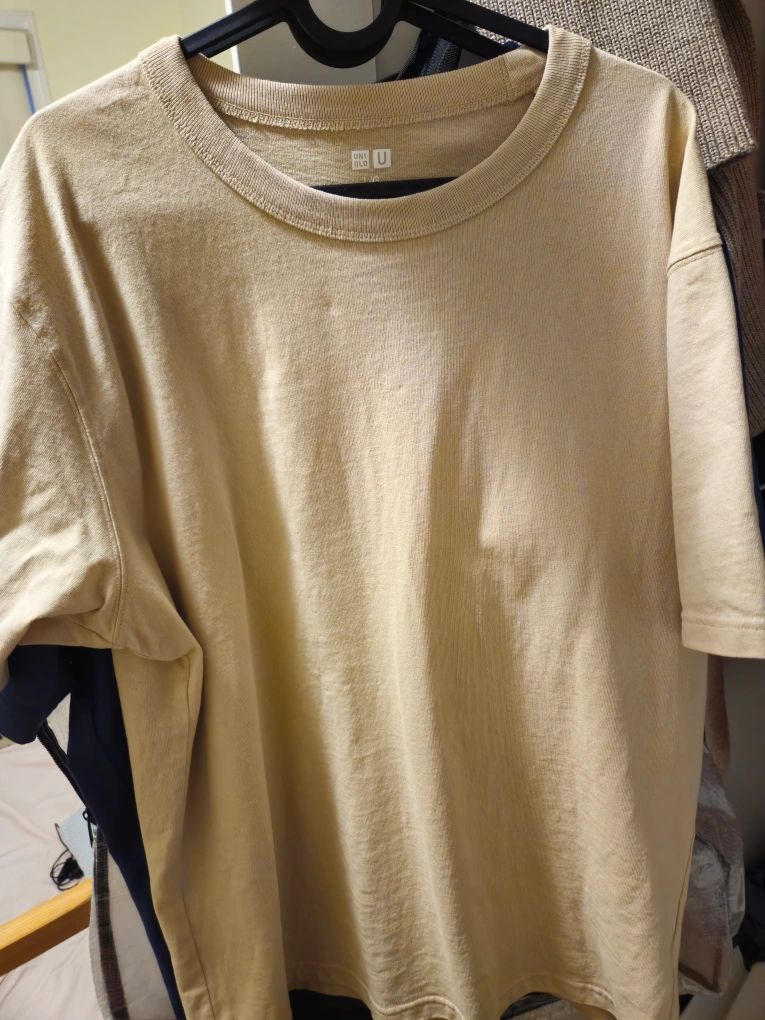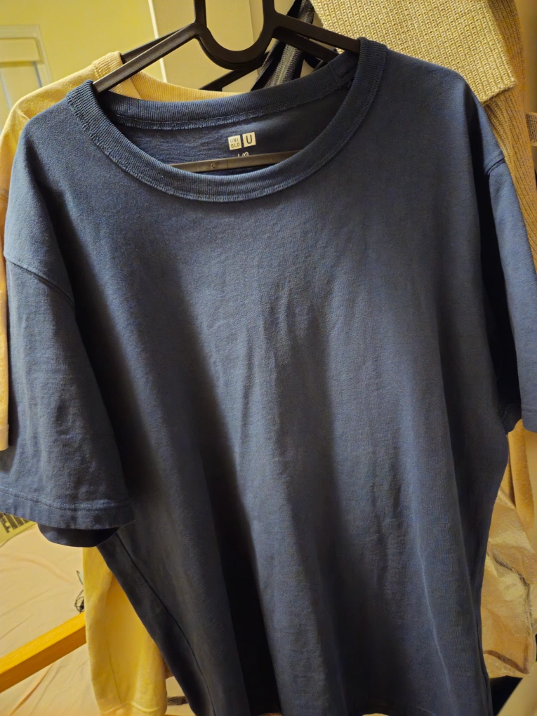 15Like new 2 Uniqlo U Crewneck tees, Navy and Beige. Thick heavy 100% cotton. not my size, tags removed. Washed once. Selling both for $25 Save 50% off on retail price, retails for $25 each.