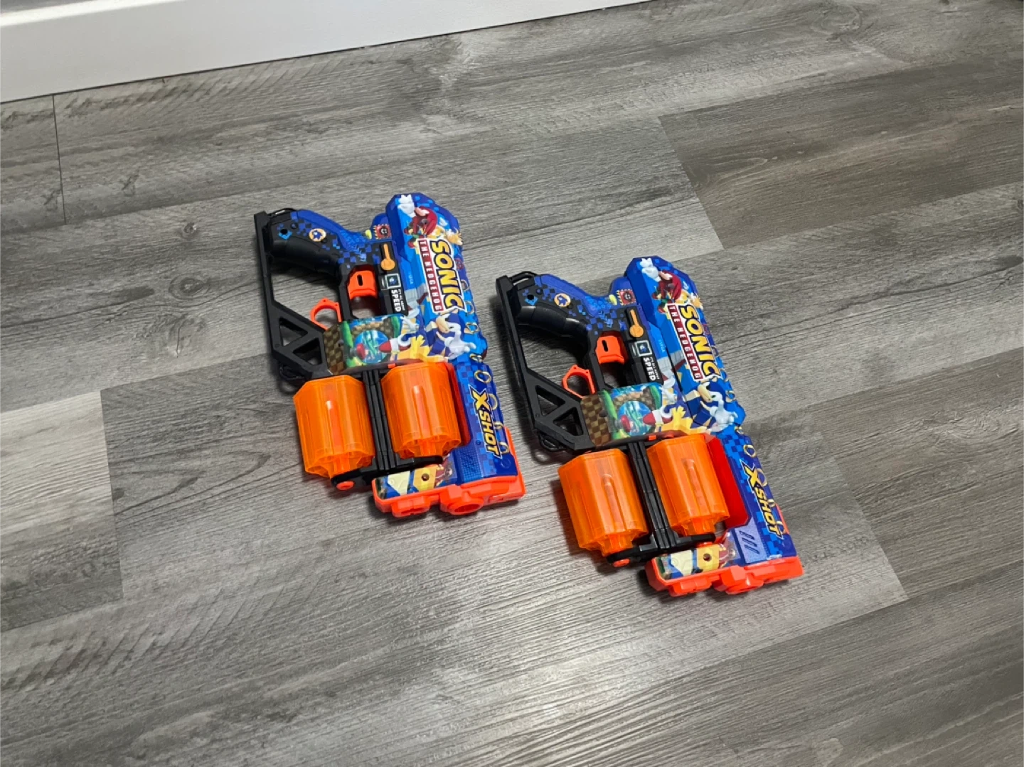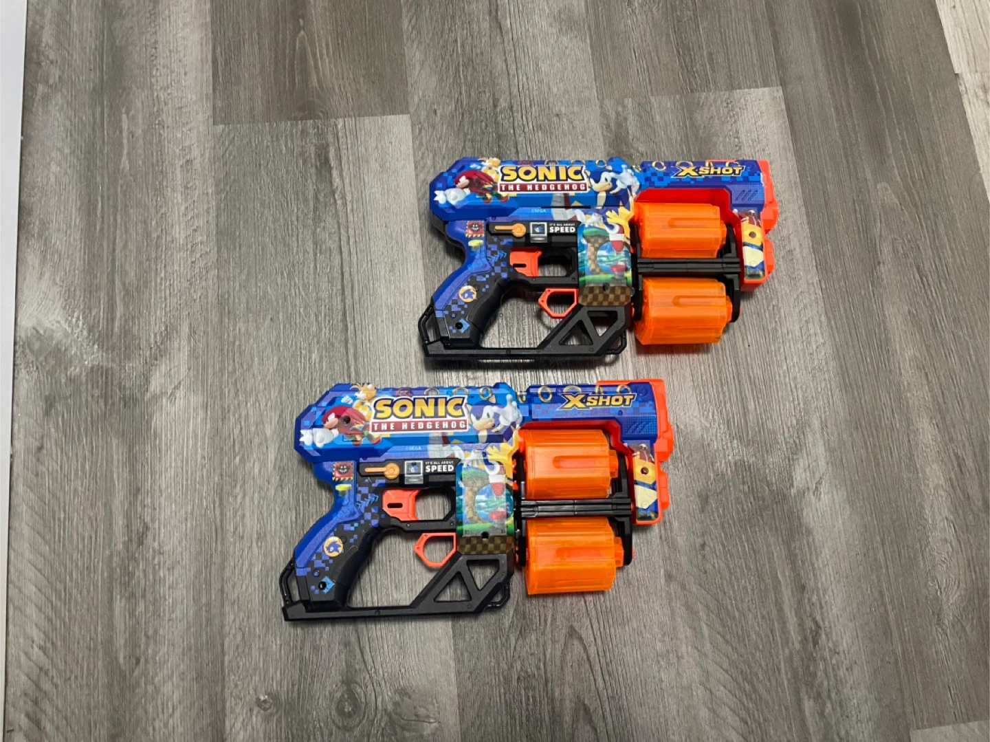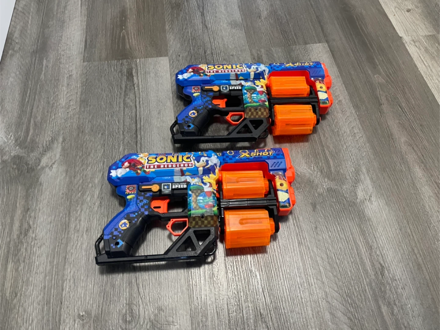 10Selling a pair of X-Shot Sonic The Hedgehog toy blasters! They're in great shape and ready for some fun. Perfect for Sonic fans! it comes in a pack of duo