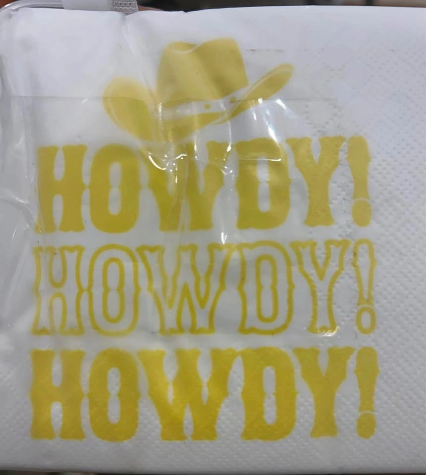 15200 “Howdy”, Cowboy theme napkins 🤠. Let’s get the party started. I have 2 packs, 200 each, $15 for 1 pack of 200. Closest intersection liberty and longworth