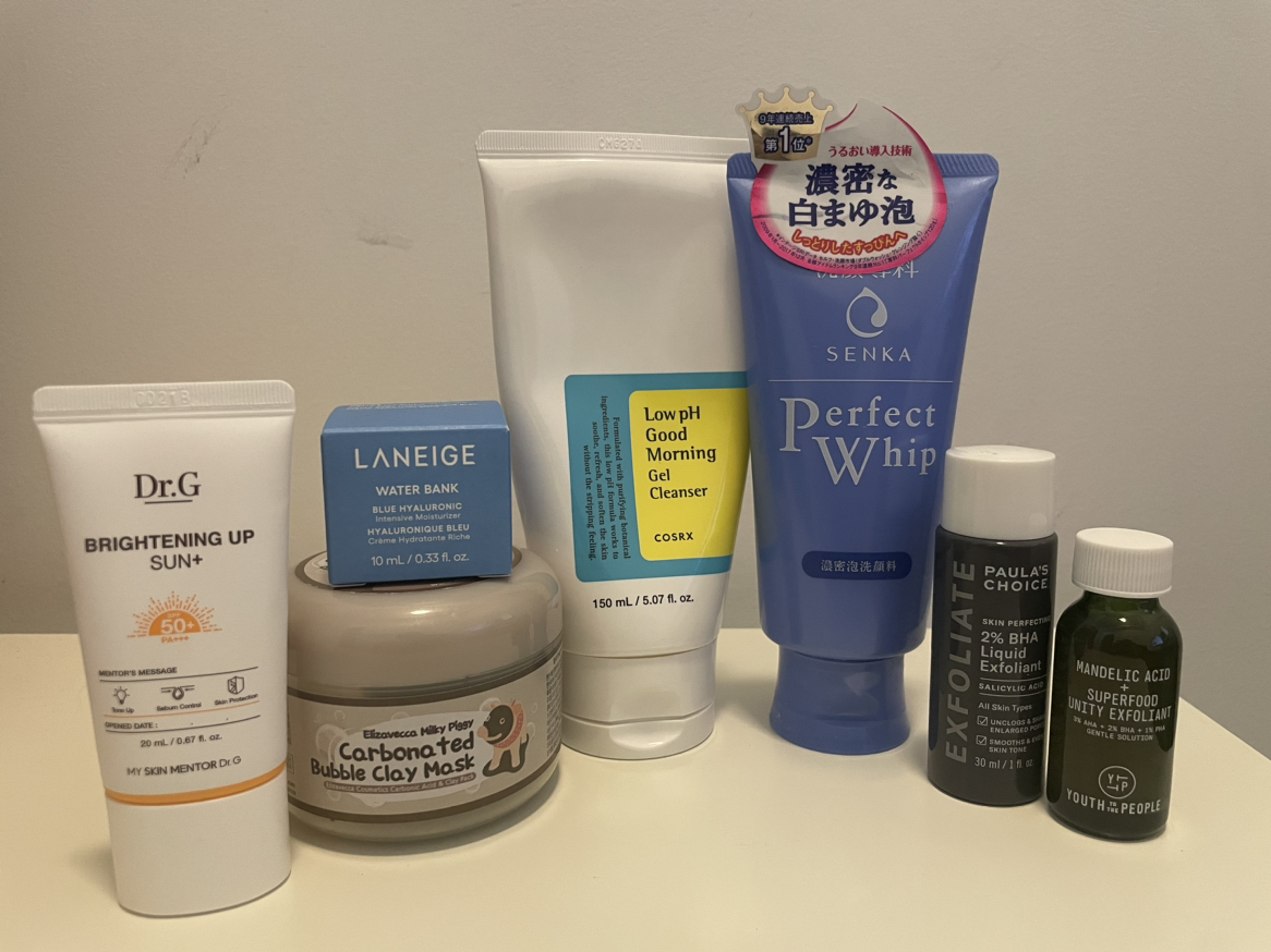 4192 half used facial cleansers Travel size Dr. G sunscreen (used once) Korean Charcoal bubble mask (90% full) Various brand new travel size products (see photo)
