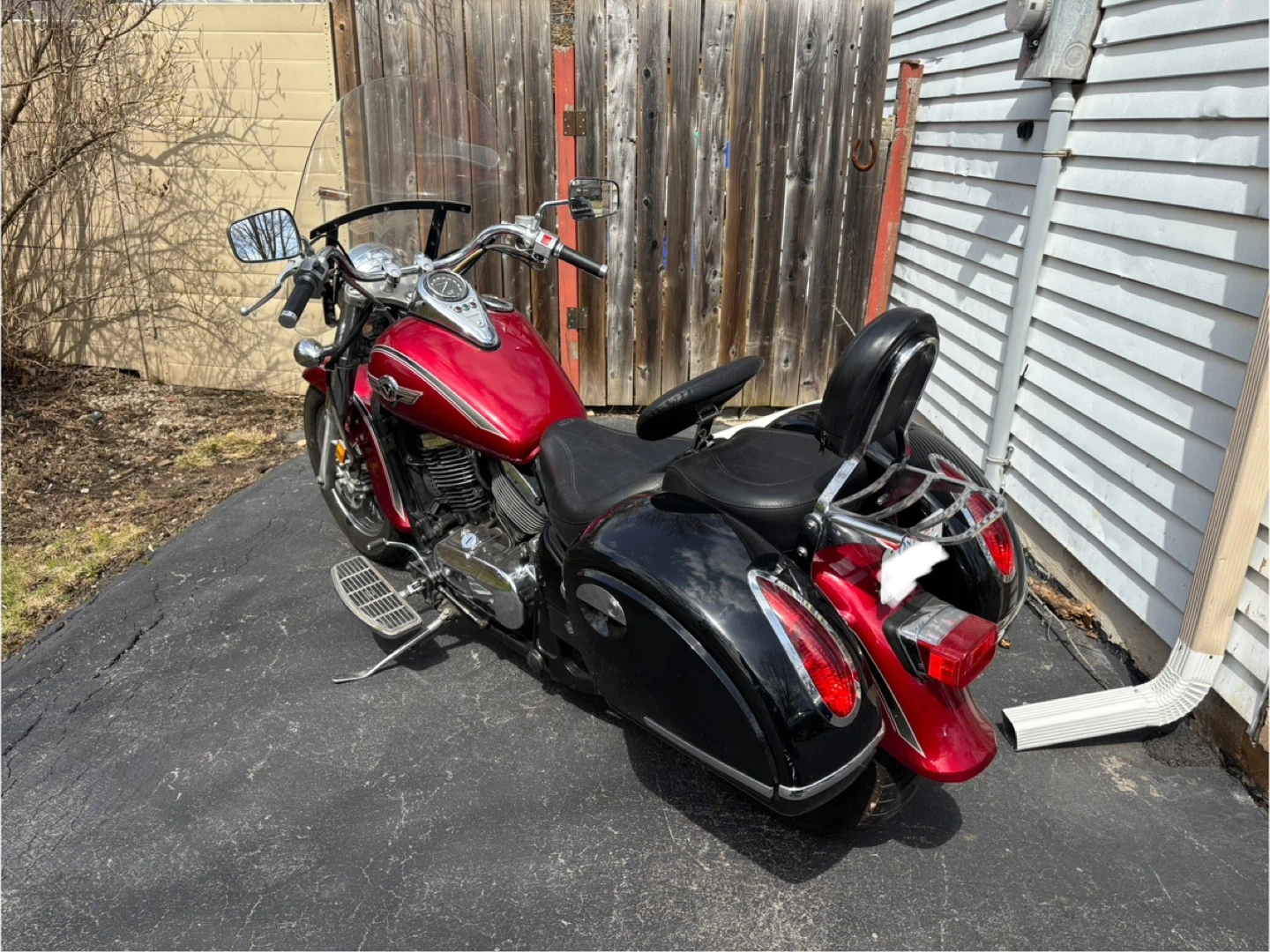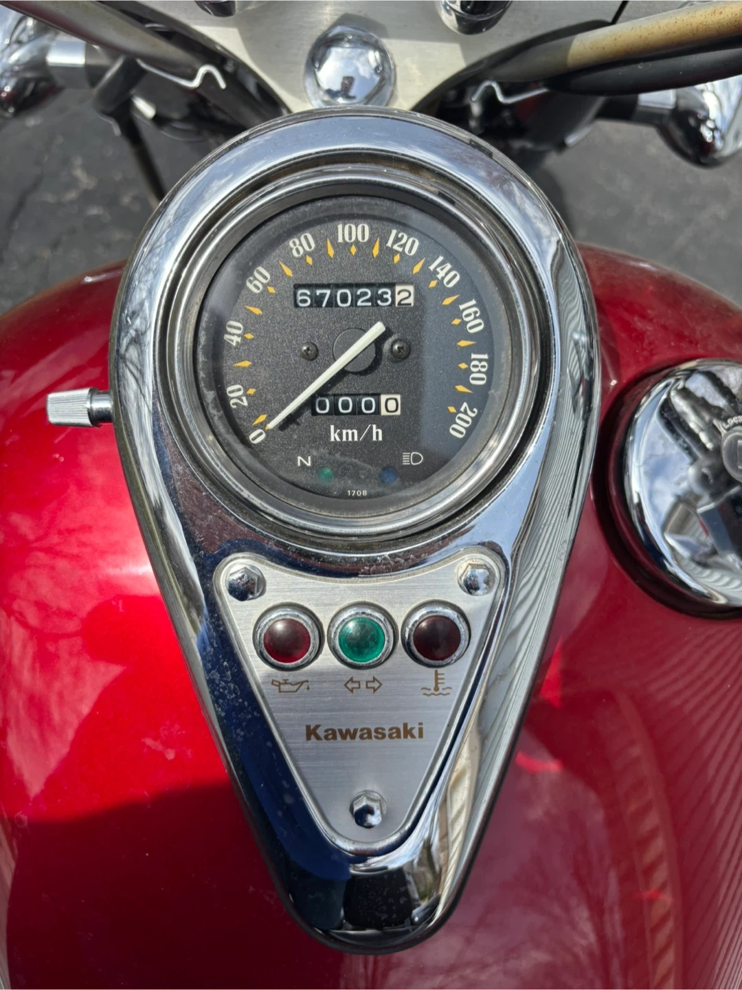 10Selling a Kawasaki Vulcan 800 Classic motorcycle. It's in great condition and ready to ride! Features a red and black colour scheme, comfortable seat, and classic styling. Perfect for cruising around town or hitting the open road.