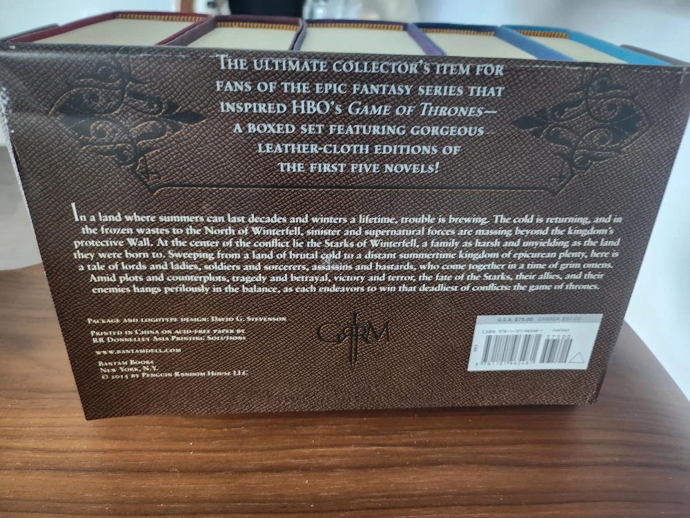 George R. R. Martin's A Game of Thrones (A Song of Ice and Fire Book Series) Leather Clothed Box Set includes: