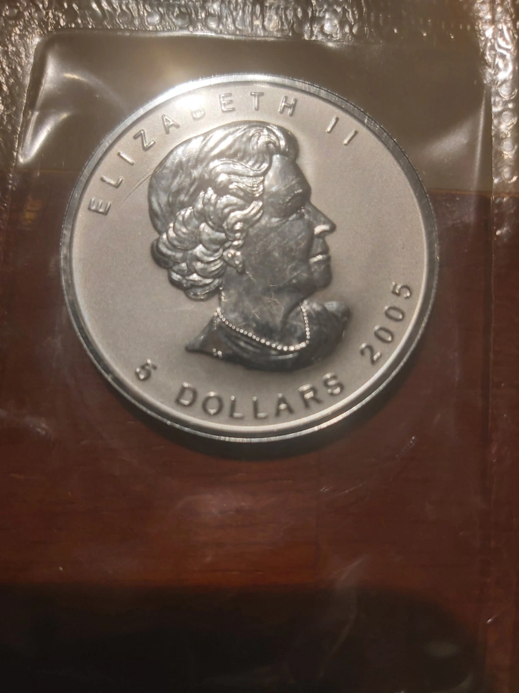 175Selling a 2005 Canadian Silver Maple Leaf coin. It contains 1 oz of .9999 fine silver. Features Elizabeth II on one side and the iconic maple leaf on the other. A great addition to any collection!